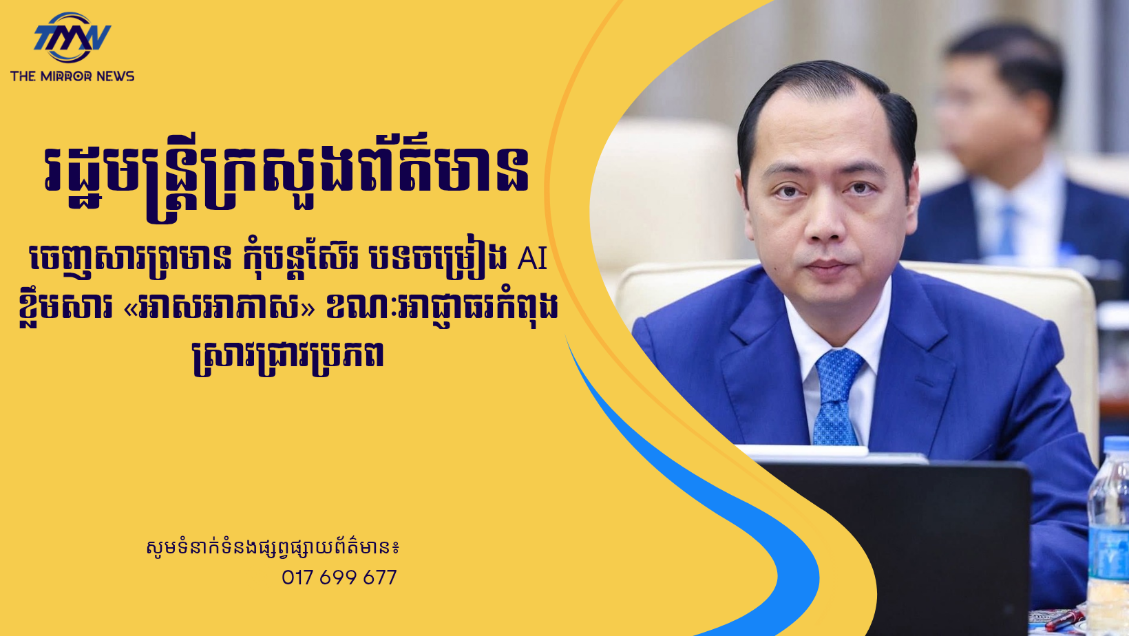 រដ្ឋមន្ត្រីក្រសួងព័ត៌មានចេញសារព្រមាន កុំបន្តស៊ែរ បទចម្រៀង AI ខ្លឹមសារ «អាសអាភាស» ខណៈអាជ្ញាធរកំពុងស្រាវជ្រាវប្រភព