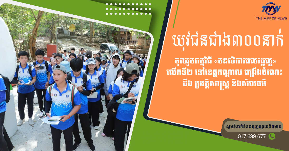 យុវជនជាង៣០០នាក់ ចូលរួមកម្មវិធី «មនសិការពលរដ្ឋល្អ» លើកទី២ នៅខេត្តកណ្តាល ពង្រឹងចំណេះដឹង ប្រវត្តិសាស្ត្រ និងសីលធម៌