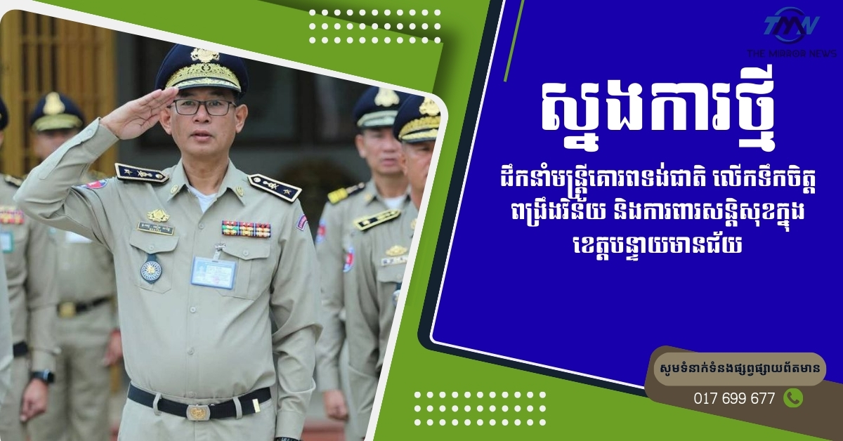 ស្នងការថ្មីដឹកនាំមន្ត្រីគោរពទង់ជាតិ លើកទឹកចិត្តពង្រឹងវិន័យ និងការពារសន្តិសុខក្នុងខេត្តបន្ទាយមានជ័យ
