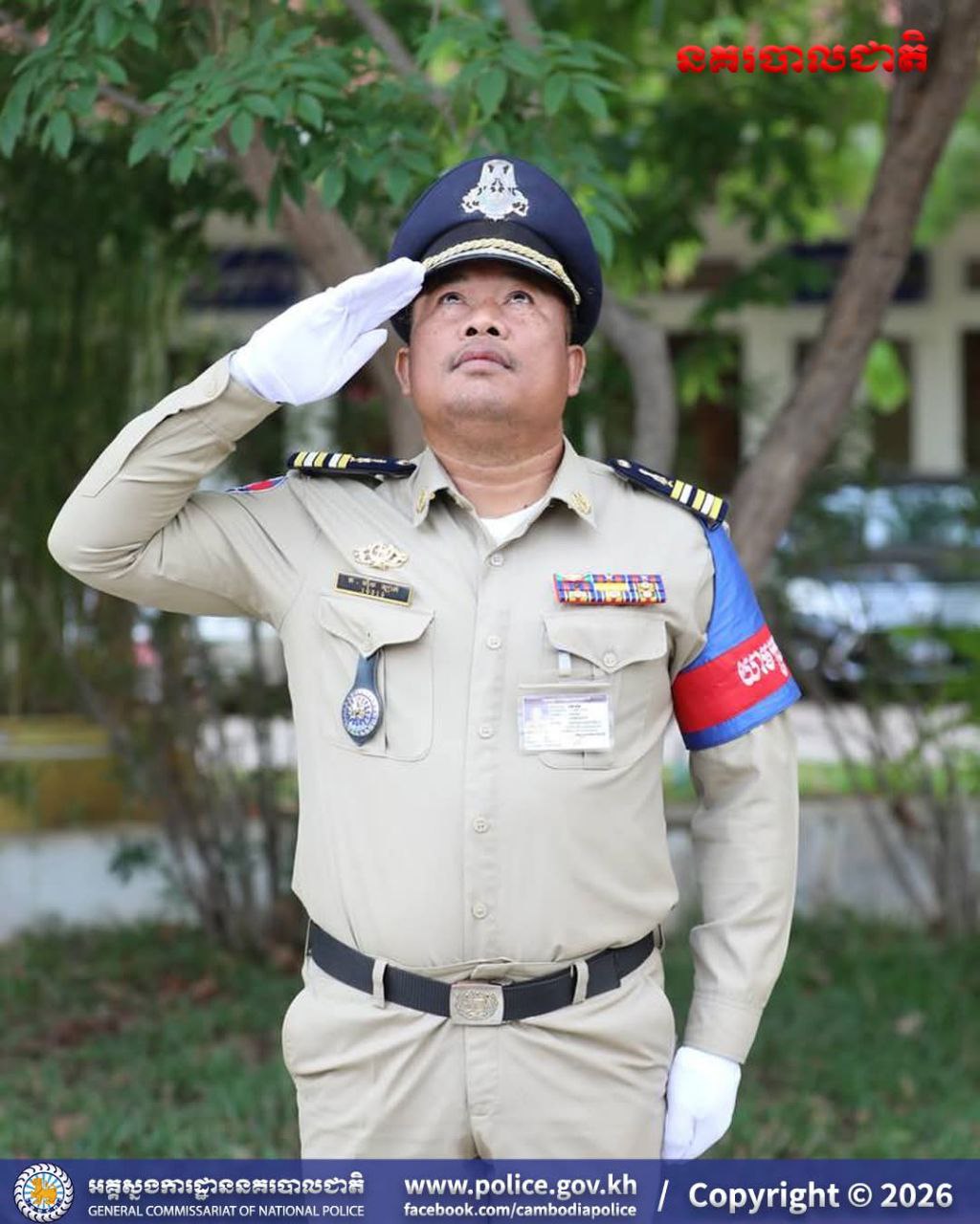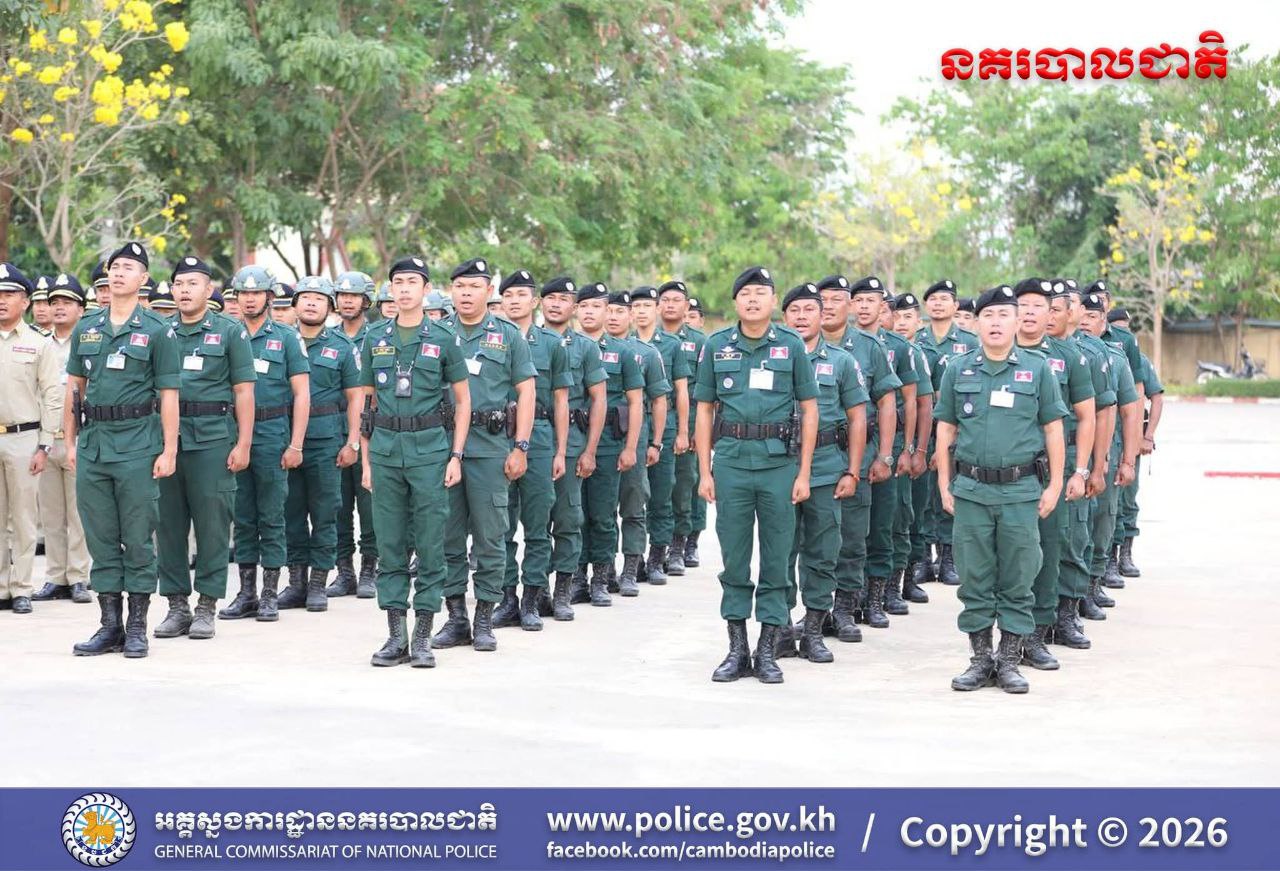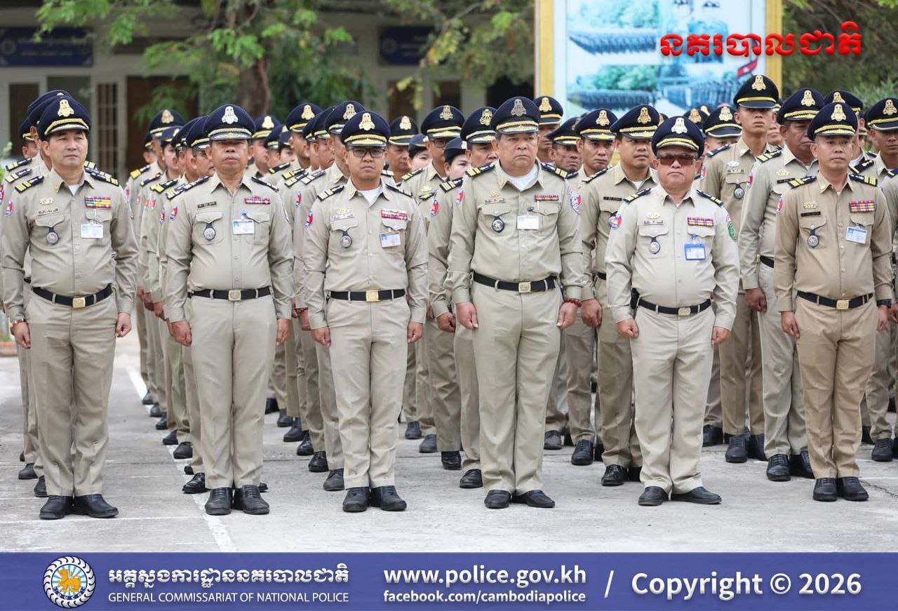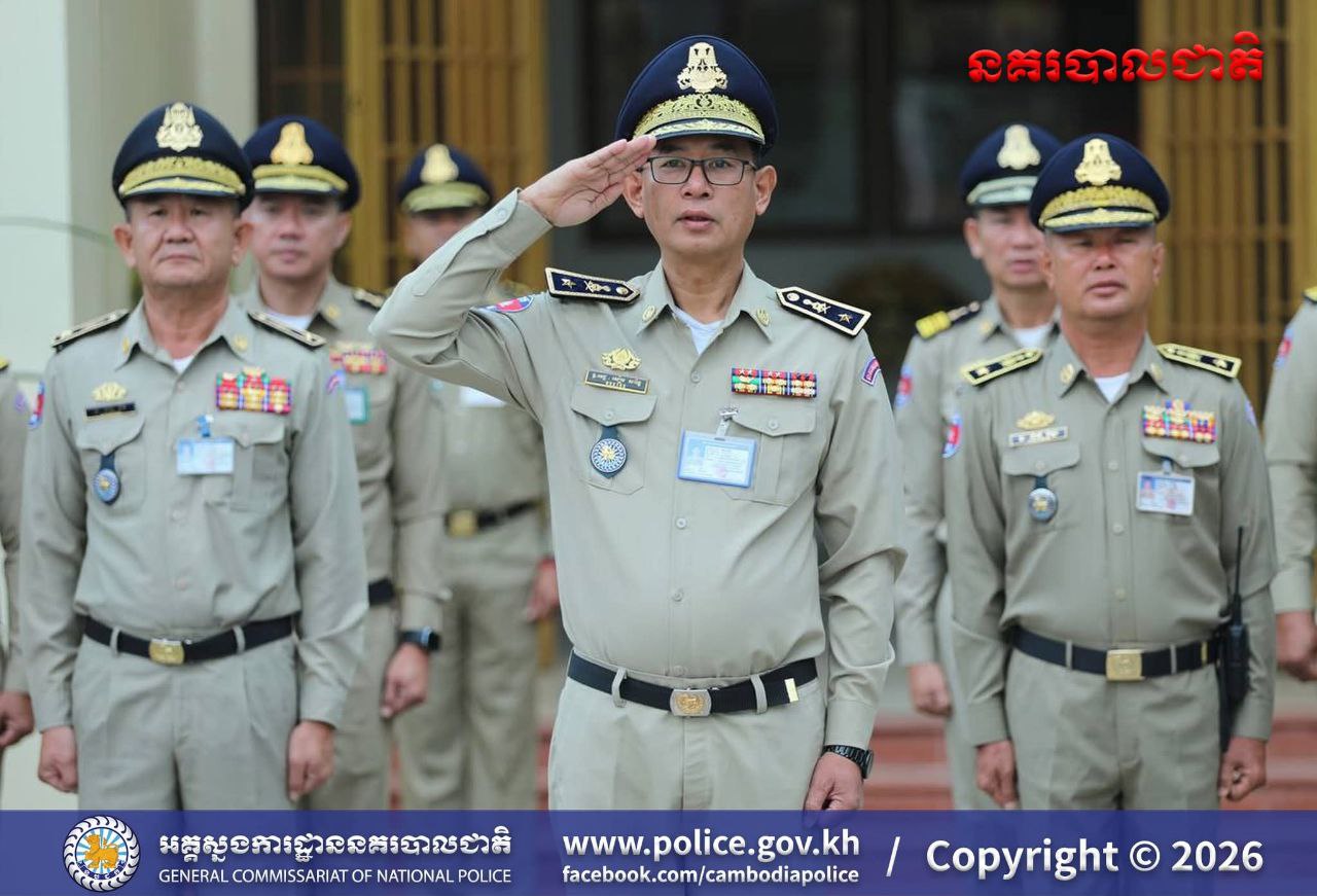 (បន្ទាយមានជ័យ)៖ នៅព្រឹកថ្ងៃចន្ទ ទី១៦ ខែមីនា ឆ្នាំ២០២៦ លោកឧត្តមសេនីយ៍ត្រី សឿម សារិទ្ធ ស្នងការនៃស្នងការដ្ឋាននគរបាលខេត្តបន្ទាយមានជ័យ បានដឹកនាំកម្លាំងនគរបាលទូទាំងខេត្ត ចូលរួមពិធីគោរពទង់ជាតិនៃព្រះរាជាណាចក្រកម្ពុជា។