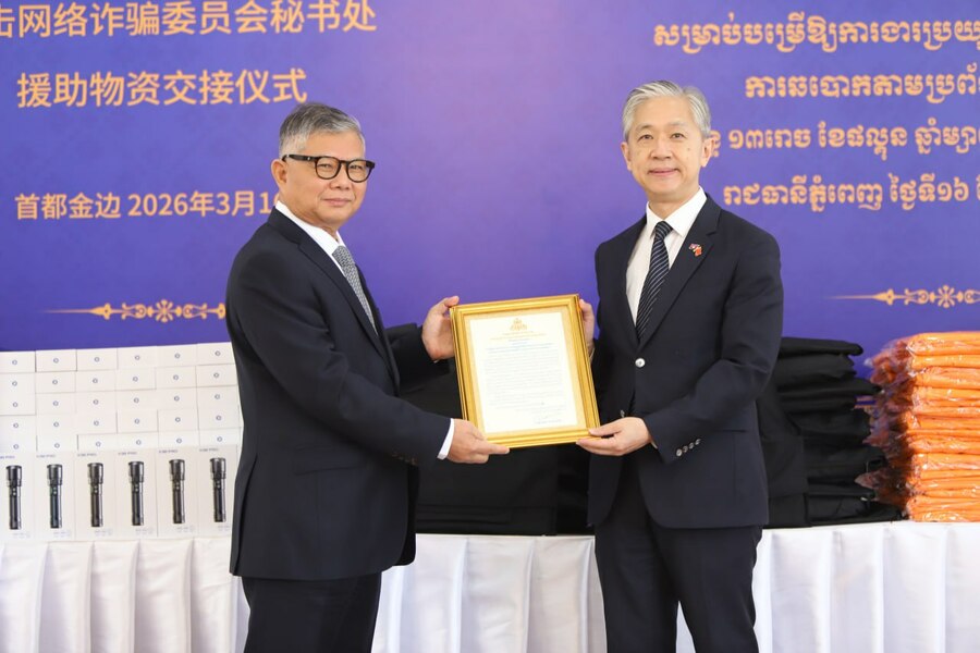 (ភ្នំពេញ)៖ លេខាធិការដ្ឋានគណៈកម្មការចំពោះកិច្ចប្រយុទ្ធប្រឆាំងការឆបោកតាមប្រព័ន្ធបច្ចេកវិទ្យា (គ.ប.ឆ.ប.) នាព្រឹកថ្ងៃទី១៦ ខែមីនា ឆ្នាំ២០២៦ បានរៀបចំពិធីប្រគល់-ទទួលសម្ភារៈបច្ចេកទេស ដែលផ្តល់ជូនដោយក្រសួងសន្តិសុខសាធារណៈនៃសាធារណរដ្ឋប្រជាមានិតចិន តាមរយៈស្ថានទូតចិនប្រចាំកម្ពុជា ដើម្បីគាំទ្រដល់ប្រតិបត្តិការបង្ក្រាបបទល្មើសឆបោកតាមប្រព័ន្ធបច្ចេកវិទ្យា (Online Scams)។