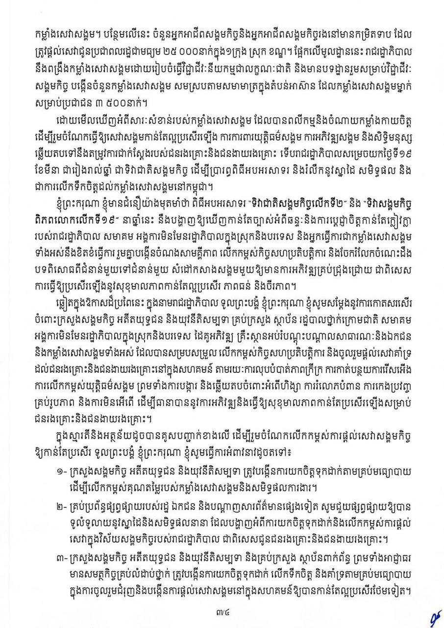 ជាក់ស្តែង ក្រសួងសង្គមកិច្ច អតីតយុទ្ធជន និងយុវនីតិសម្បទា បានដាក់ចេញគោលការណ៍ណែនាំស្តីពីសមត្ថភាពមូលដ្ឋានសម្រាប់កម្លាំងសេវាសង្គម និងកំពុងរៀបចំបង្កើតគណៈវិជ្ជាជីវៈសង្គមកិច្ច ដើម្បីគ្រប់គ្រង និងលើកកម្ពស់គុណភាពសេវាសង្គមនៅកម្ពុជា។ទាំងនេះ សុទ្ធតែបង្ហាញពីចក្ខុវិស័យច្បាស់លាស់ និងការប្តេជ្ញាចិត្តរបស់រាជរដ្ឋាភិបាល ក្នុងការធានាថា ប្រជាពលរដ្ឋគ្រប់រូប ទទួលបានសិទ្ធិ សេរីភាព សមភាព និងសុវត្ថិភាព ដោយមិនបោះបង់នរណាម្នាក់ចោលឡើយ៕