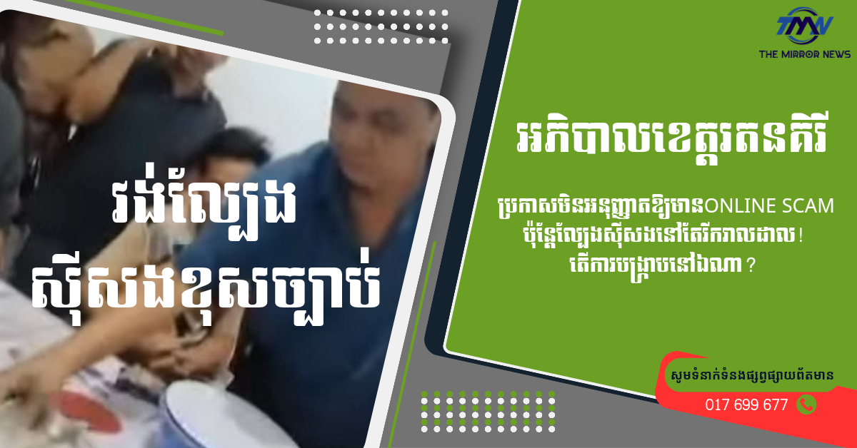 អភិបាលខេត្តរតនគិរីប្រកាសមិនអនុញ្ញាតឲ្យមាន Online Scam ប៉ុន្តែល្បែងស៊ីសងនៅតែរីករាលដាល! តើការបង្ក្រាបនៅឯណា?