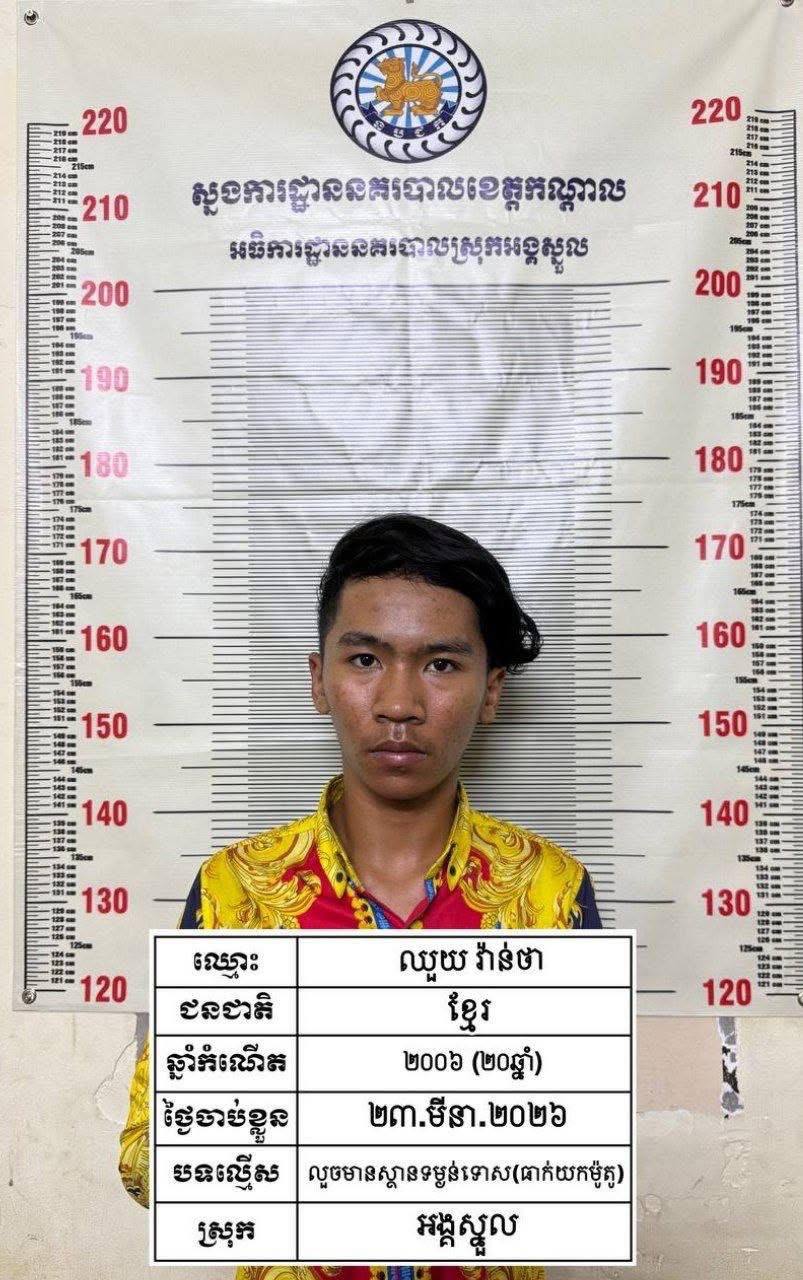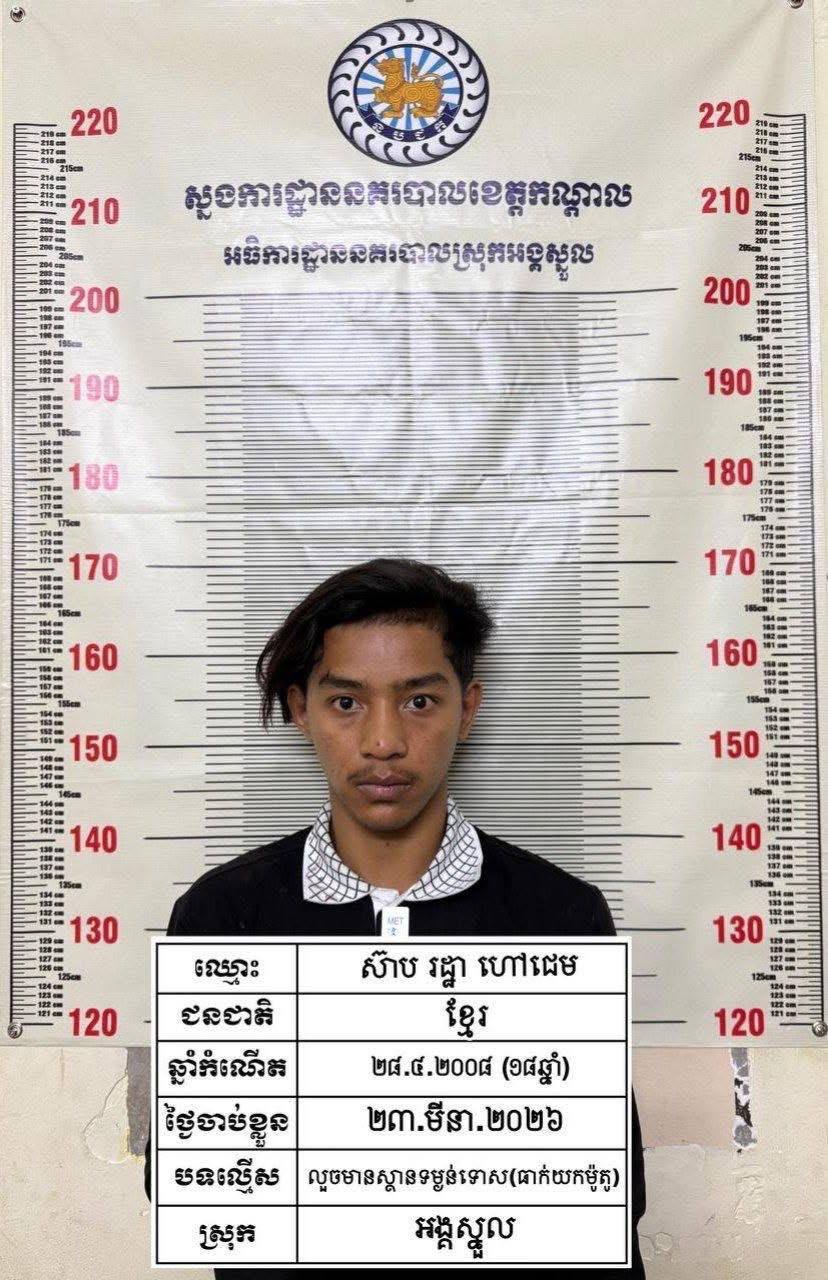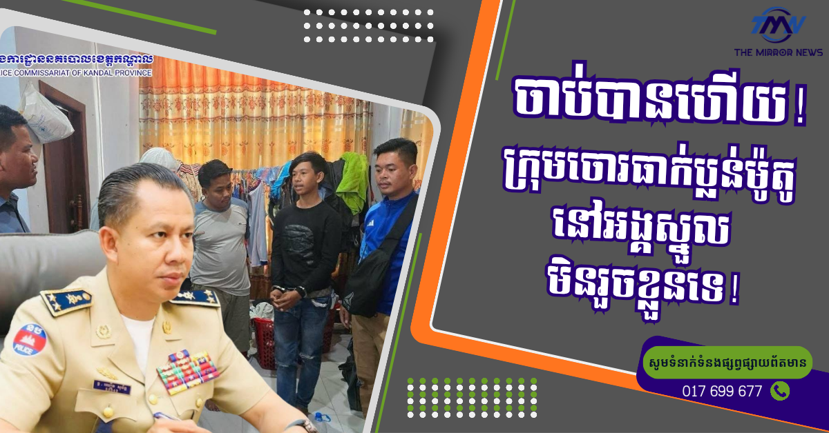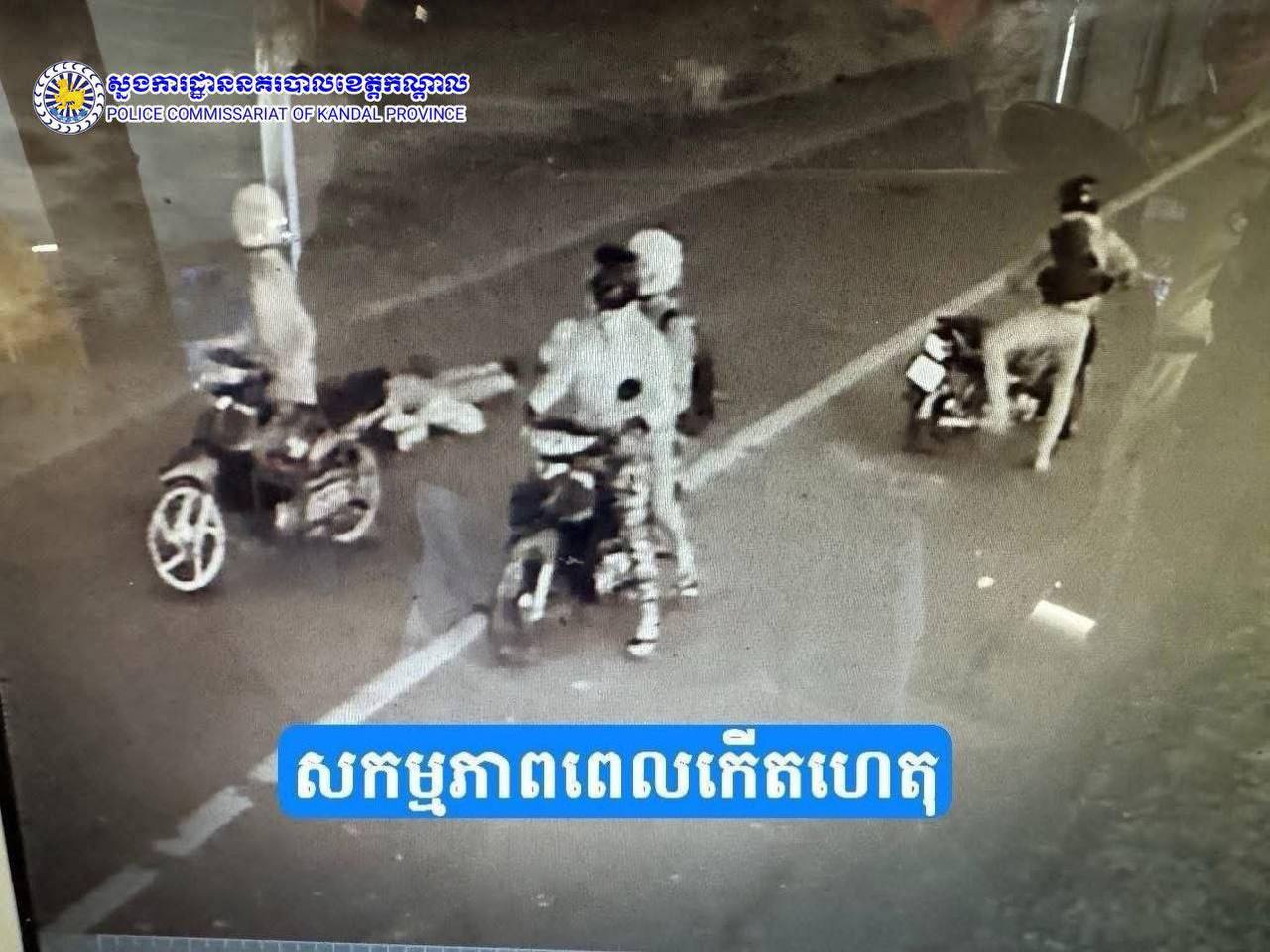 (កណ្ដាល)៖ ក្រោមការអនុវត្តតាមបទបញ្ជាដ៏តឹងរ៉ឹងរបស់លោកឧត្តមសេនីយ៍ទោ ឈឿន សុចិត្ត ស្នងការនគរបាលខេត្តកណ្តាល កម្លាំងជំនាញខេត្តសហការជាមួយអធិការដ្ឋាននគរបាលស្រុកអង្គស្នួល និងកម្លាំងខេត្តកំពង់ស្ពឺបានបើកប្រតិបត្តិការស្រាវជ្រាវយ៉ាងសកម្ម រហូតឈានដល់ការបង្រ្កាប និងឃាត់ខ្លួនជនសង្ស័យបាន៤នាក់ ក្នុងករណីធាក់ប្លន់ម៉ូតូយ៉ាងព្រៃផ្សៃ។