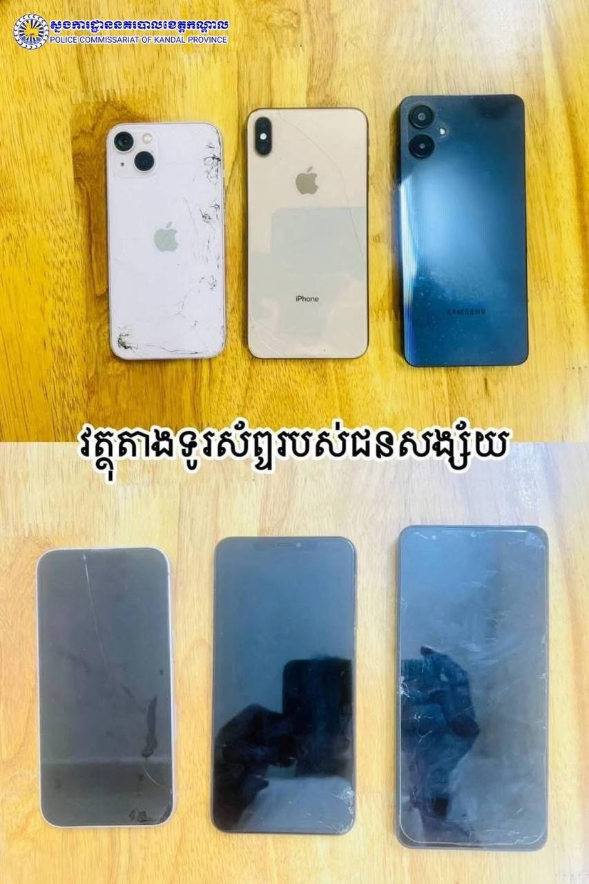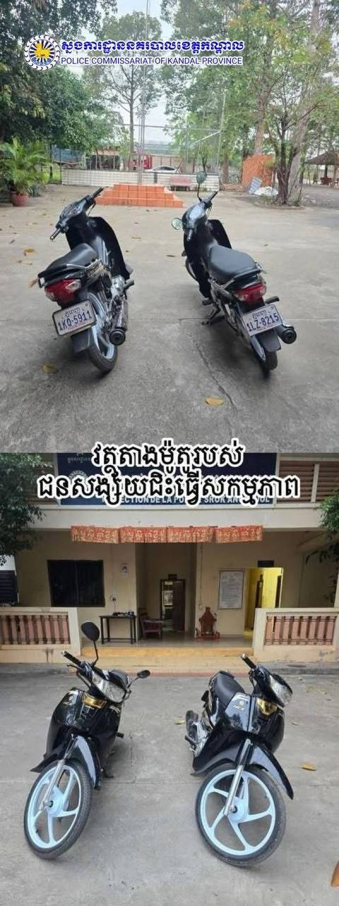 វត្ថុតាងដែលសមត្ថកិច្ចដកហូតបាន រួមមាន៖ ម៉ូតូ Dream C125 ចំនួន២គ្រឿង និងទូរសព្ទដៃ៣គ្រឿង (iPhone ២គ្រឿង និង Samsung ១គ្រឿង)។