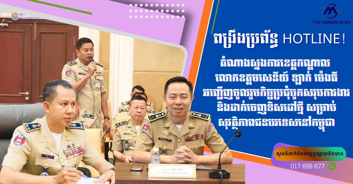 ពង្រឹងប្រព័ន្ធ HOTLINE! តំណាងស្នងការខេត្តកណ្ដាល លោកឧត្ដមសេនីយ៍ ឡាក់ ម៉េងធី អញ្ជើញចូលរួមកិច្ចប្រជុំបូកសរុបការងារ និងដាក់ចេញទិសដៅថ្មី សម្រាប់សុវត្ថិភាពជនបរទេសនៅកម្ពុជា