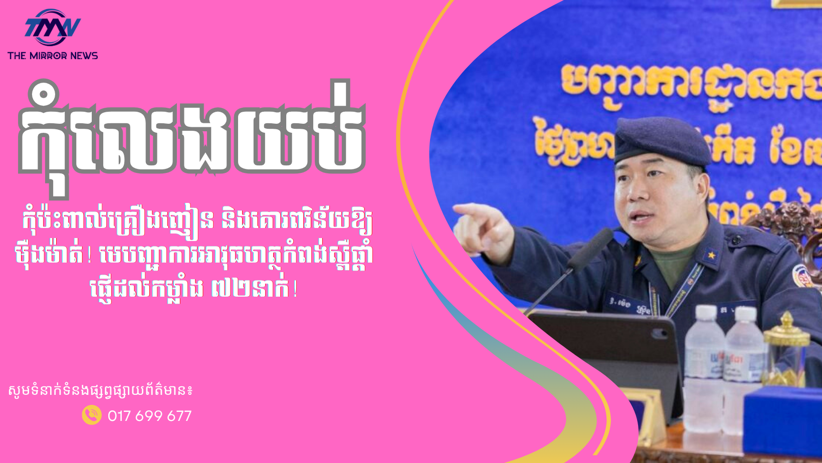 កុំលេងយប់ កុំប៉ះពាល់គ្រឿងញៀន និងគោរពវិន័យឱ្យម៉ឺងម៉ាត់! មេបញ្ជាការអាវុធហត្ថកំពង់ស្ពឺផ្តាំផ្ញើដល់កម្លាំង៧២នាក់!