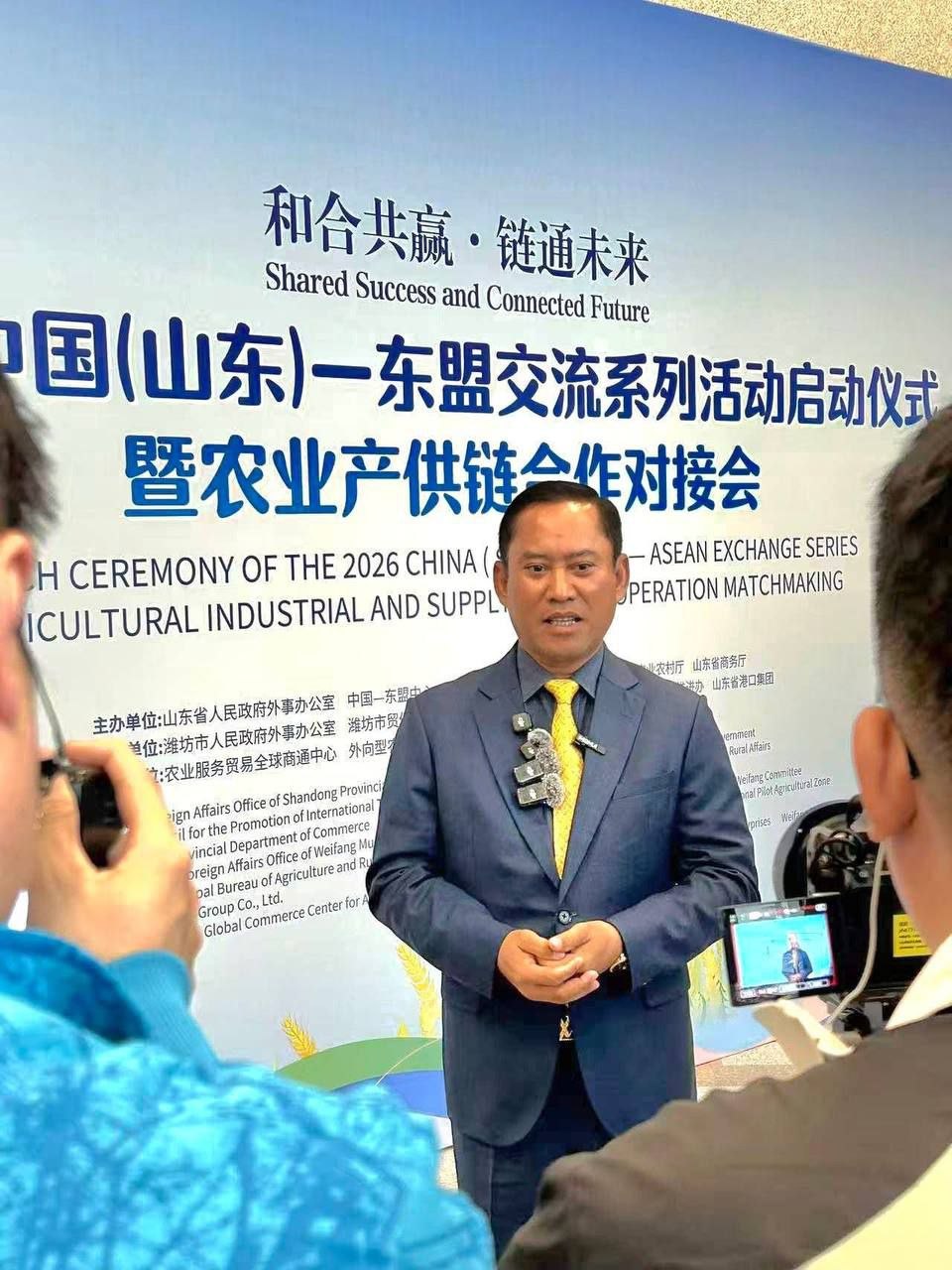 (ខេត្តសានទុង-ចិន)៖ ក្នុងឱកាសអញ្ជើញចូលរួមកិច្ចប្រជុំខួបទី៥ នៃភាពជាដៃគូយុទ្ធសាស្ត្រគ្រប់ជ្រុងជ្រោយ អាស៊ាន-ចិន និងពិធីដាក់ឱ្យដំណើរការ «ឆ្នាំនៃការផ្លាស់ប្តូរ និងសហប្រតិបត្តិការរវាងខេត្តសានទុង និងអាស៊ាន ឆ្នាំ២០២៦» នៅថ្ងៃទី២៦ ខែមីនា ឆ្នាំ២០២៦នេះ លោក វ៉ី សំណាង អភិបាលខេត្តតាកែវ បានធ្វើបទបង្ហាញយ៉ាងច្បាស់លាស់ពីសក្ដានុពលសំខាន់ៗរបស់ខេត្ត ដល់តំណាងក្រុមហ៊ុនជាង៧០ មកពីបណ្តាប្រទេសអាស៊ាន និងខេត្តសានទុង ប្រទេសចិន។