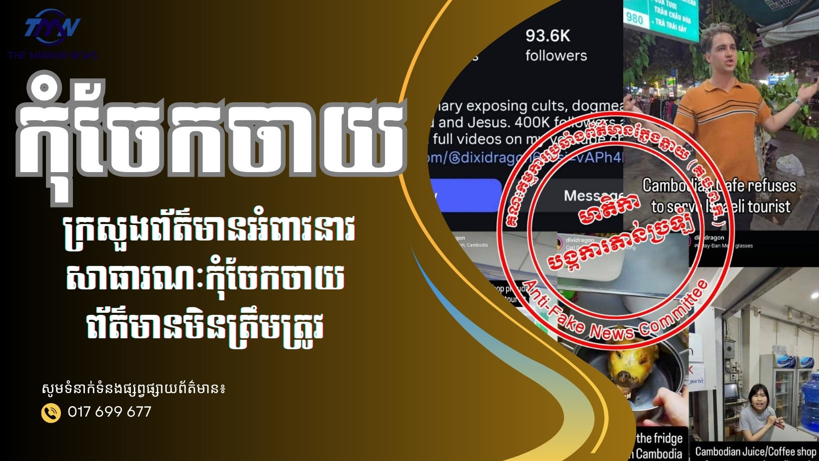 អាស្រ័យហេតុនេះ ក្រសួងព័ត៌មានសូមអំពាវនាវដល់សាធារណៈជន ឱ្យប្រុងប្រយ័ត្នក្នុងការទទួល និងចែកចាយព័ត៌មានលើបណ្តាញសង្គម ពិសេសមាតិកាដែលមិនមានប្រភពច្បាស់លាស់។ ក៏ដូចជាអំពាវនាវឱ្យចូលរួមជាផ្នែកមួយក្នុងការការពារព័ត៌មានត្រឹមត្រូវ ដោយចូលរួមបញ្ចេញមតិពន្យល់ក្នុងមាតិកាដែលអាចបង្កការយល់ច្រឡំថា «ពុំមែននៅកម្ពុជា និងពុំមែនជាខ្មែរ»។