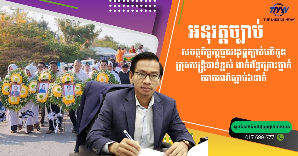 សមត្ថកិច្ចប្តេជ្ញាអនុវត្តច្បាប់លើកូនប្រុសមន្ត្រីជាន់ខ្ពស់ ពាក់ព័ន្ធគ្រោះថ្នាក់ចរាចរណ៍ស្លាប់៦នាក់