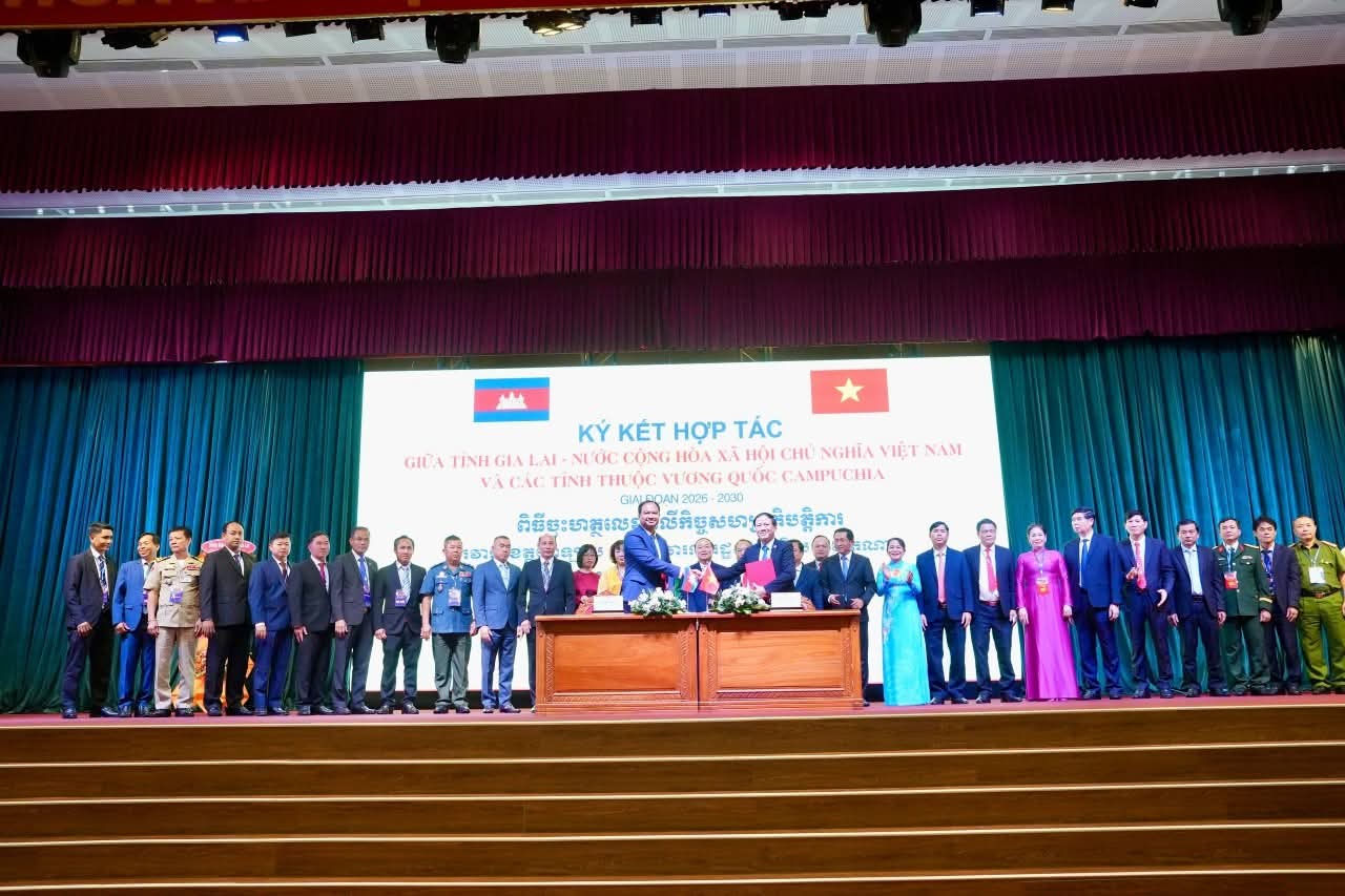 (ព្រះវិហារ)៖ ឯកឧត្តម គីម រិទ្ធី អភិបាលខេត្តព្រះវិហារ នៅថ្ងៃទី២៩ ខែមិនា ឆ្នាំ២០២៦នេះ បានដឹកនាំប្រតិភូអញ្ជើញចូលរួមក្នុងកិច្ចប្រជុំ និងពិធីចុះហត្ថលេខាលើអនុស្សារណៈយោគយល់គ្នា រវាងខេត្តព្រះវិហារ ខេត្តស្ទឹងត្រែង និងខេត្តរតនគីរី នៃកម្ពុជា ជាមួយខេត្តយ៉ាឡាយ សាធារណរដ្ឋសង្គមនិយមវៀតណាម នៅសាលសន្និសីទនៃគណៈកម្មាធិការប្រជាជនខេត្តយ៉ាឡាយ។