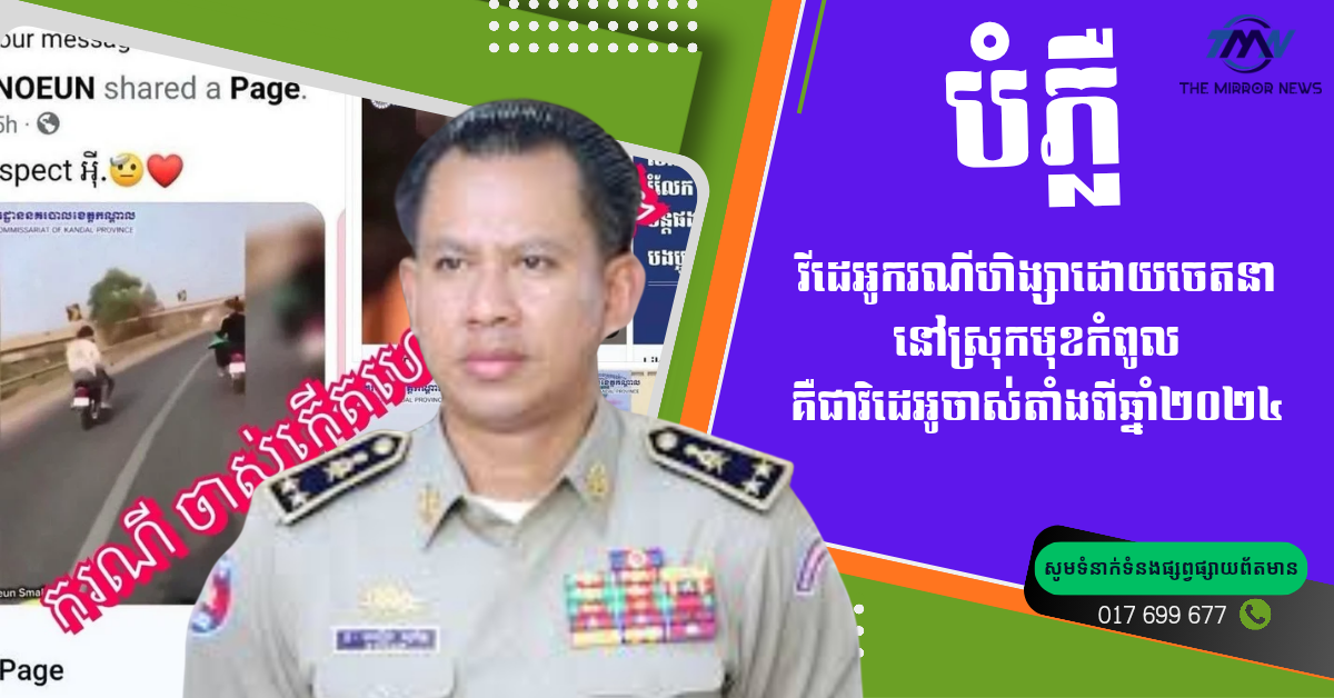 (កណ្ដាល)៖ «ពាក់ព័ន្ធនឹងការចែកចាយវីដេអូករណីហិង្សាដោយចេតនា នៅស្រុកមុខកំពូល ខេត្តកណ្តាល ដែលត្រូវបានម្ចាស់ផេកហ្វេសប៊ុកមួយចំនួន ដូចជា NOEUN, AEmK និងផេកផ្សេងទៀត យកមកកាត់ត និងបង្ហោះផ្សព្វផ្សាយឡើងវិញ នាំឲ្យមានការយល់ច្រឡំក្នុងចំណោមសាធារណជន»។ នេះបើតាមសេចក្តីប្រកាសព័ត៌មានរបស់ក្រុមការងារព័ត៌មាន និងប្រតិកម្មរហ័ស នៃស្នងការដ្ឋាននគរបាលខេត្តកណ្តាលដែលអង្គភាព The Mirror News ទទួលបាននៅថ្ងៃទី៣០ ខែមីនា ឆ្នាំ២០២៦នេះ។