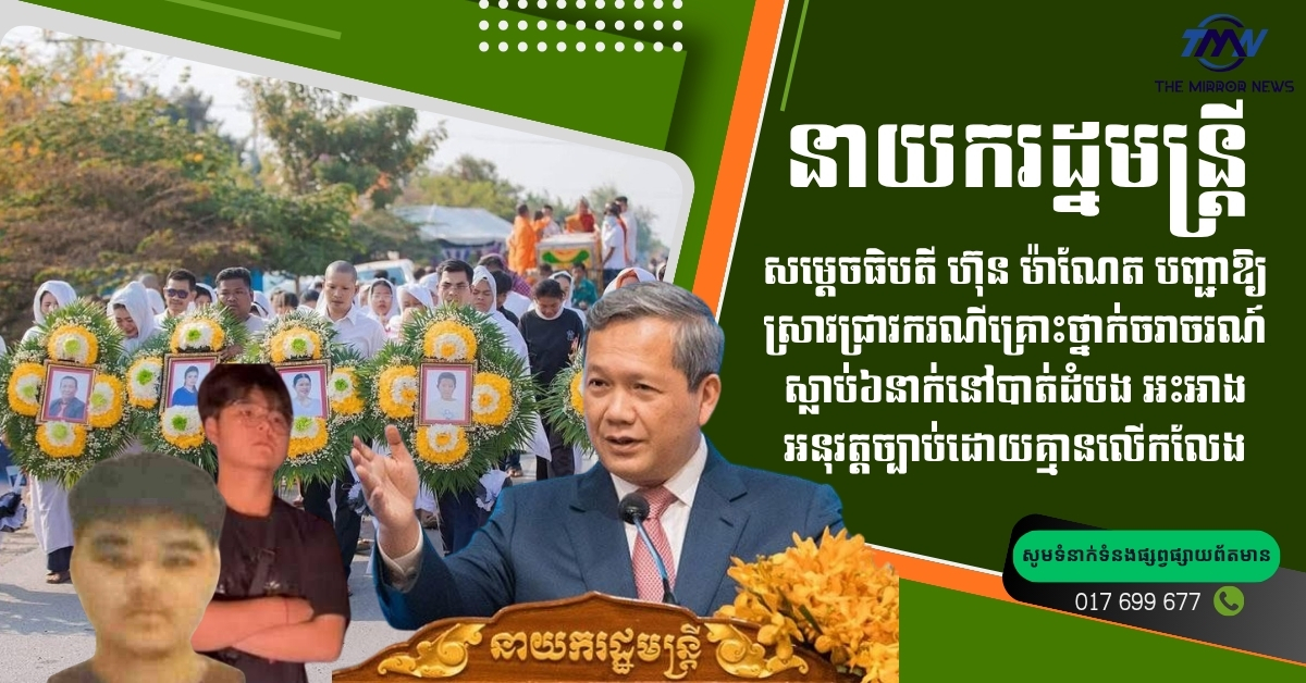 សម្ដេចធិបតី ហ៊ុន ម៉ាណែត បញ្ជាឱ្យស្រាវជ្រាវករណីគ្រោះថ្នាក់ចរាចរណ៍ស្លាប់៦នាក់នៅបាត់ដំបង អះអាងអនុវត្តច្បាប់ដោយគ្មានលើកលែង