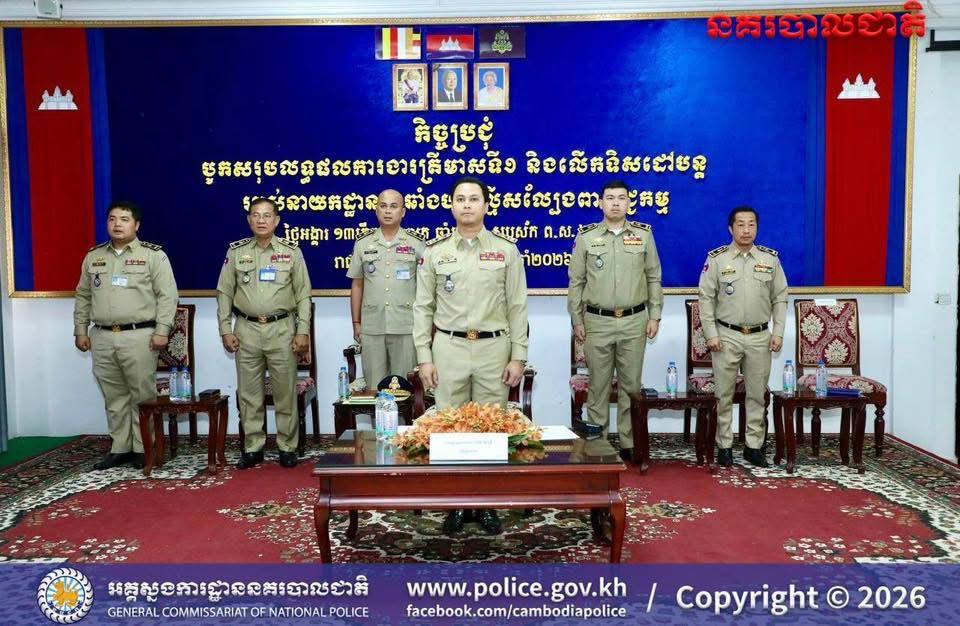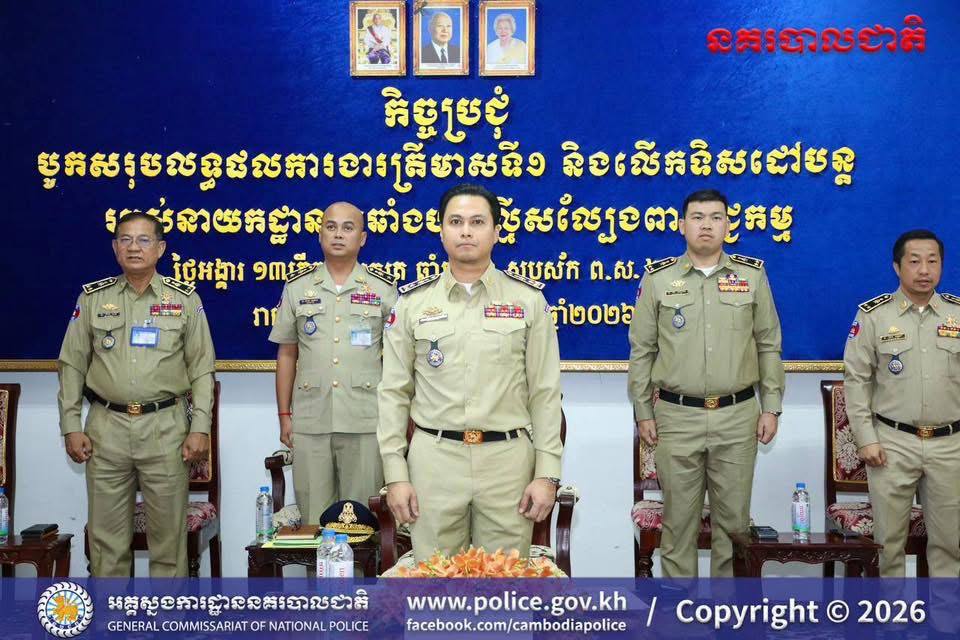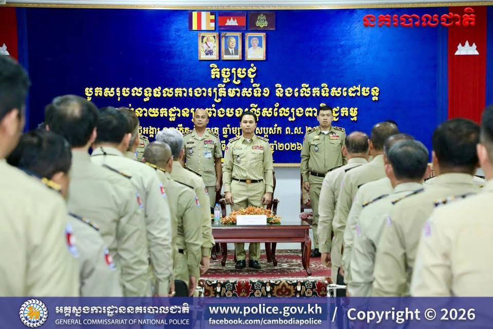 ក្នុងកិច្ចប្រជុំបូកសរុបលទ្ធផលការងារត្រីមាសទី១ និងលើកទិសដៅបន្ត នៅថ្ងៃទី៣១ ខែមីនា ឆ្នាំ២០២៦ នាសាលប្រជុំអគ្គស្នងការដ្ឋាននគរបាលជាតិ ឯកឧត្តមបានបញ្ជាក់ថា មន្ត្រីនគរបាលទាំងអស់ មិនត្រឹមតែត្រូវជៀសវាងពីបទល្មើស Online Scams ប៉ុណ្ណោះទេ ប៉ុន្តែត្រូវមិនពាក់ព័ន្ធនឹងបទល្មើសគ្រប់ប្រភេទ ជាពិសេសបទល្មើសគ្រឿងញៀនផងដែរ។