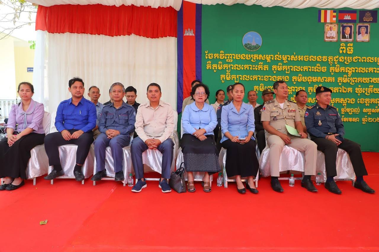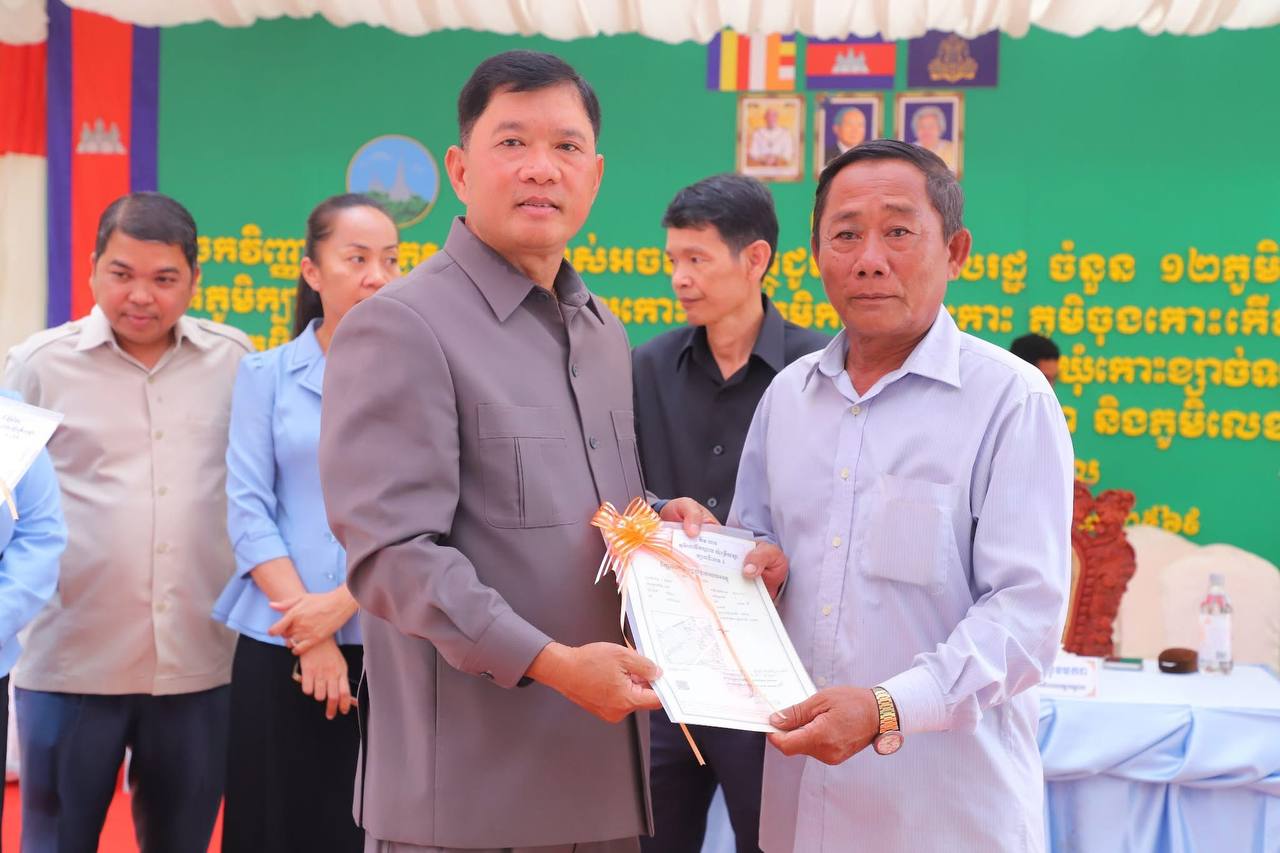 (កណ្តាល)៖ អាជ្ញាធរខេត្តកណ្តាលបានប្រគល់វិញ្ញាបនបត្រសម្គាល់ម្ចាស់អចលនវត្ថុជូនប្រជាពលរដ្ឋ ១២ភូមិ ក្នុងស្រុកស្អាង សរុប ៨,៨៤៤ ប័ណ្ណ នៅថ្ងៃទី២ ខែមេសា ឆ្នាំ២០២៦ ដើម្បីធានាសិទ្ធិកម្មសិទ្ធ និងពង្រឹងសុវត្ថិភាពរស់នៅ។