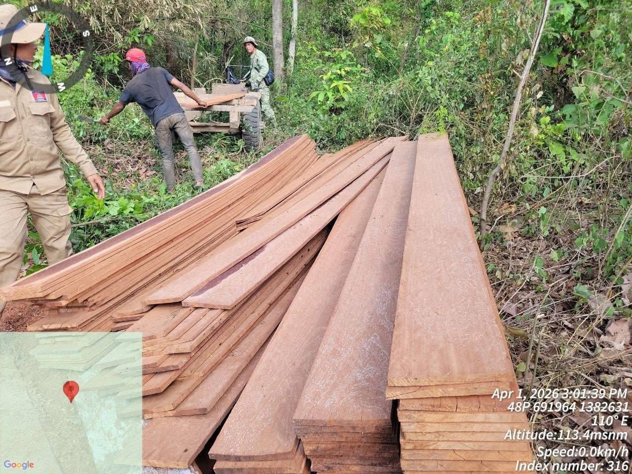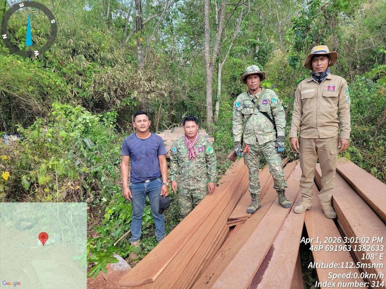 បន្ថែមពីនេះ កម្លាំងជំនាញបានចាប់ឃាត់ម៉ូតូចំនួន ១គ្រឿង ដែលដឹកសាច់ជ្រូកព្រៃចំនួន ៣០គីឡូក្រាម និងបានប្រទះឃើញឈើអារអញ្ញាតជនប្រភេទឈើទាល (ក្ដា) ចំនួន ៧០សន្លឹក ស្មើនឹង ១.៤០០ ម៉ែត្រគូប។ វត្ថុតាងទាំងនេះ ត្រូវបានយកទៅរក្សាទុកនៅស្នាក់ការរងរហ៊ូត ខណៈសាច់ជ្រូកព្រៃត្រូវបានដុតបំផ្លាញចោលតាមនីតិវិធី។