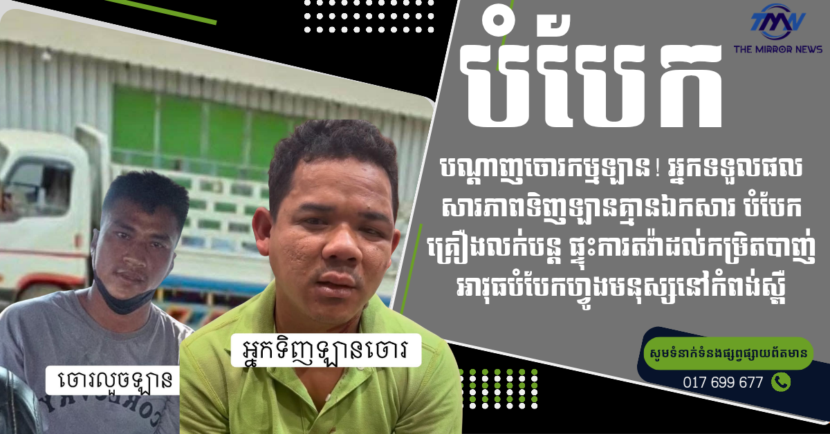 The Mirror News សូមរំលឹកថា បទល្មើសទទួលផលពីអំពើចោរកម្ម គឺជាបទល្មើសដែលត្រូវបានច្បាប់កំណត់ទោសយ៉ាងតឹងរ៉ឹង ហើយអាចជាហេតុជំរុញឲ្យមានបទល្មើសបន្ត។ អង្គភាពយើងខ្ញុំ សូមអំពាវនាវដល់សាធារណជន ឲ្យមានការប្រុងប្រយ័ត្នក្នុងការទិញទ្រព្យសម្បត្តិ ដែលមិនមានប្រភពច្បាស់លាស់ និងចូលរួមសហការជាមួយសមត្ថកិច្ច ដើម្បីថែរក្សាសន្តិសុខសង្គម។