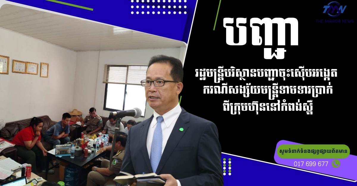 រដ្ឋមន្ត្រីបរិស្ថានបញ្ជាចុះស៊ើបអង្កេត ករណីសង្ស័យមន្ត្រីទាមទារប្រាក់ពីក្រុមហ៊ុននៅកំពង់ស្ពឺ