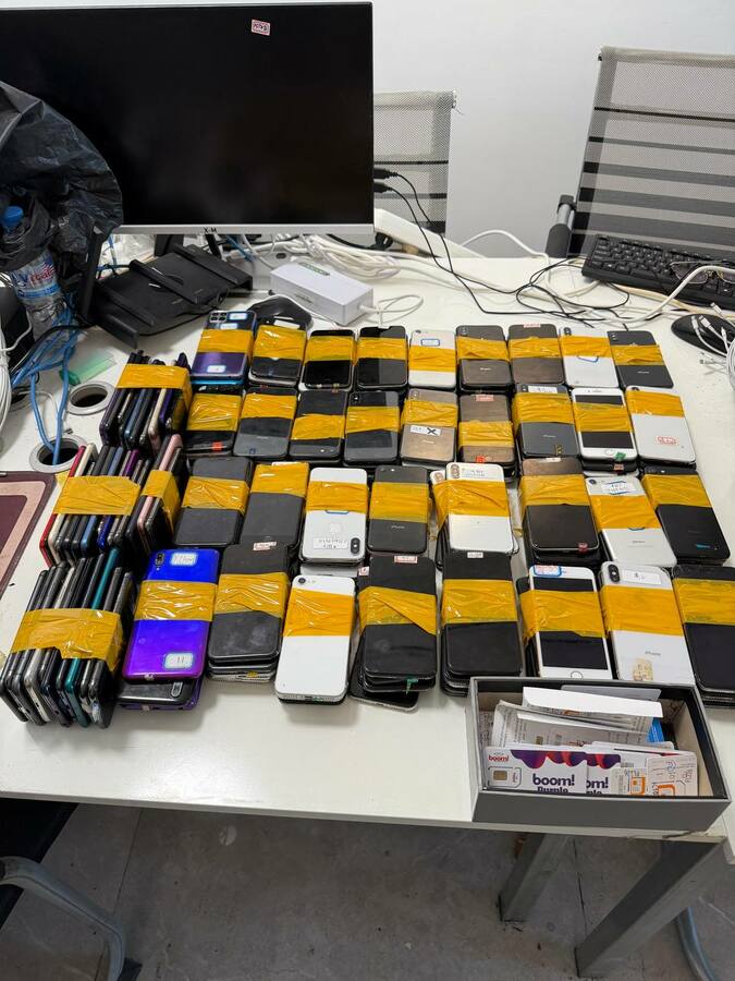 នៅទីតាំងកើតហេតុ កម្លាំងជំនាញបានដកហូតវត្ថុតាងជាច្រើន រួមមានកុំព្យូទ័រ All-in-One ចំនួន ១៣៣គ្រឿង កុំព្យូទ័រយួរដៃ ៤៤គ្រឿង ទូរស័ព្ទដៃ ៣៩២គ្រឿង ម៉ូនីទ័រ ១៦គ្រឿង CPU ១៥គ្រឿង Tablet ៥គ្រឿង ព្រមទាំងសម្ភារៈពាក់ព័ន្ធនឹងការក្លែងបន្លំជានគរបាលជប៉ុន ដូចជា មួក អាវ និងកាតសម្គាល់ផងដែរ។