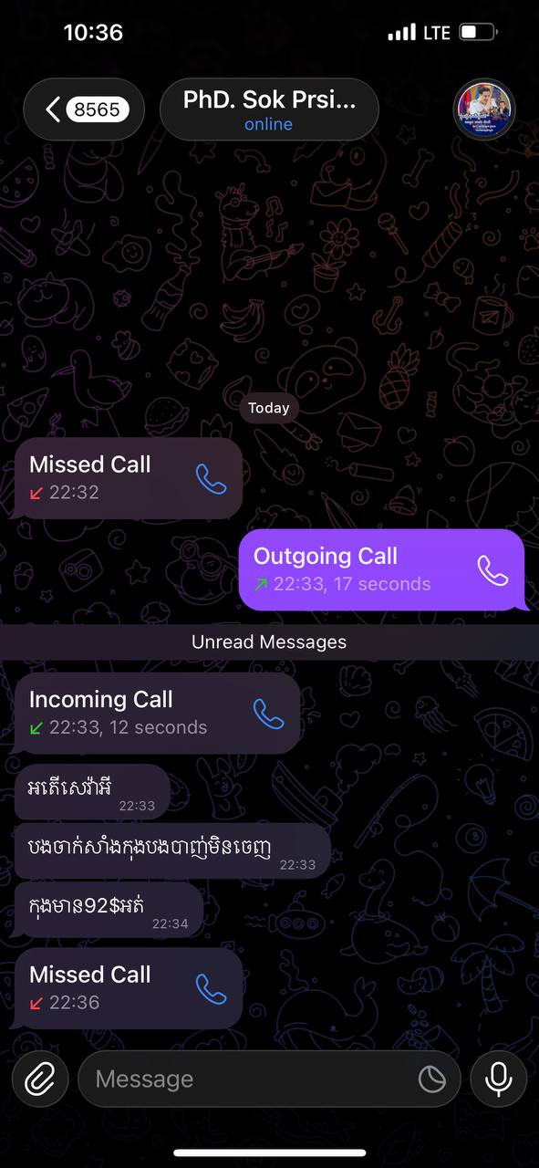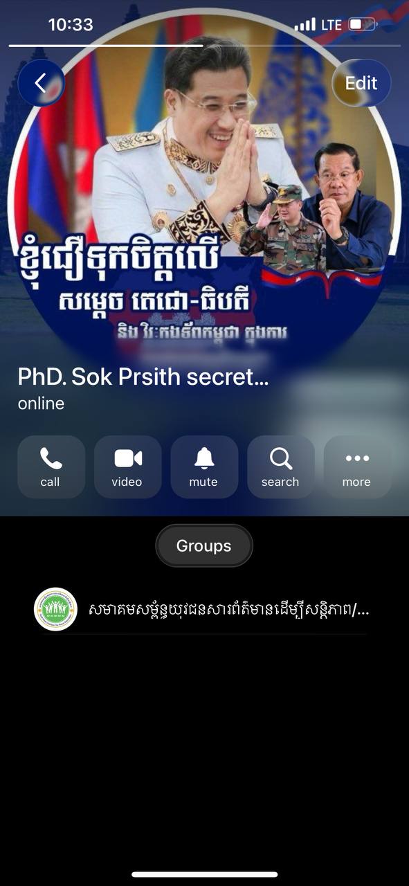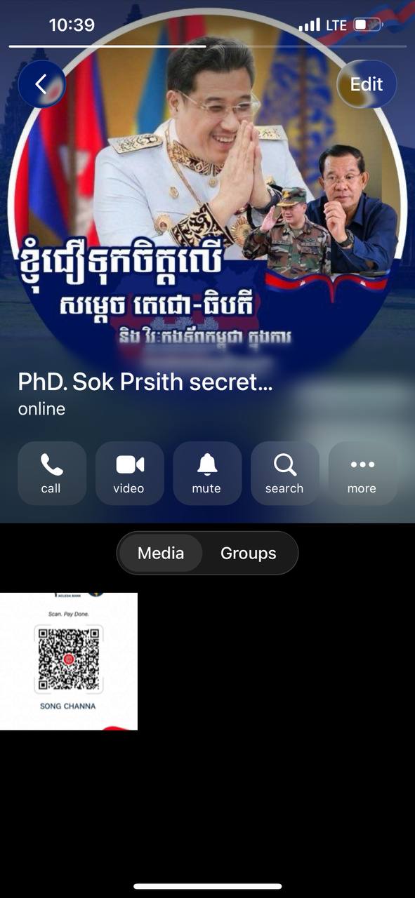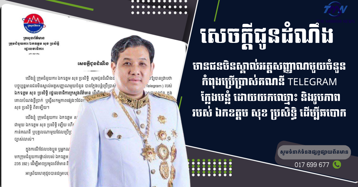 មានជនមិនស្គាល់អត្តសញ្ញាណមួយចំនួន កំពុងប្រើប្រាស់គណនី Telegram ក្លែងបន្លំ ដោយយកឈ្មោះ និងរូបភាពរបស់ ឯកឧត្តម សុខ ប្រសិទ្ធិ ដើម្បីឆបោក