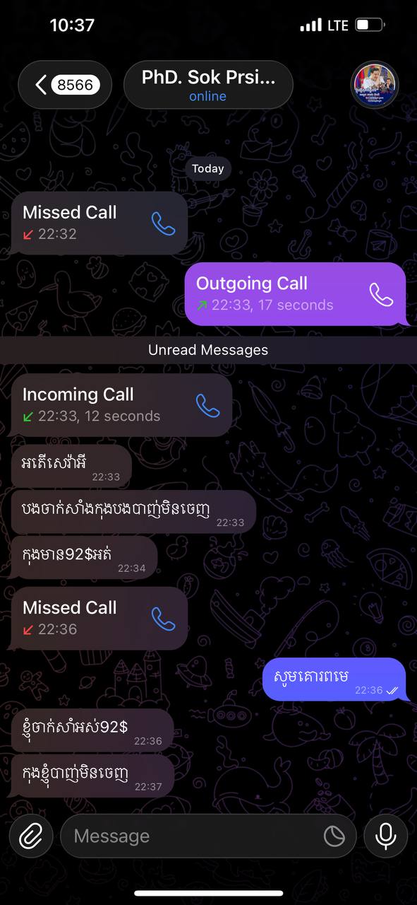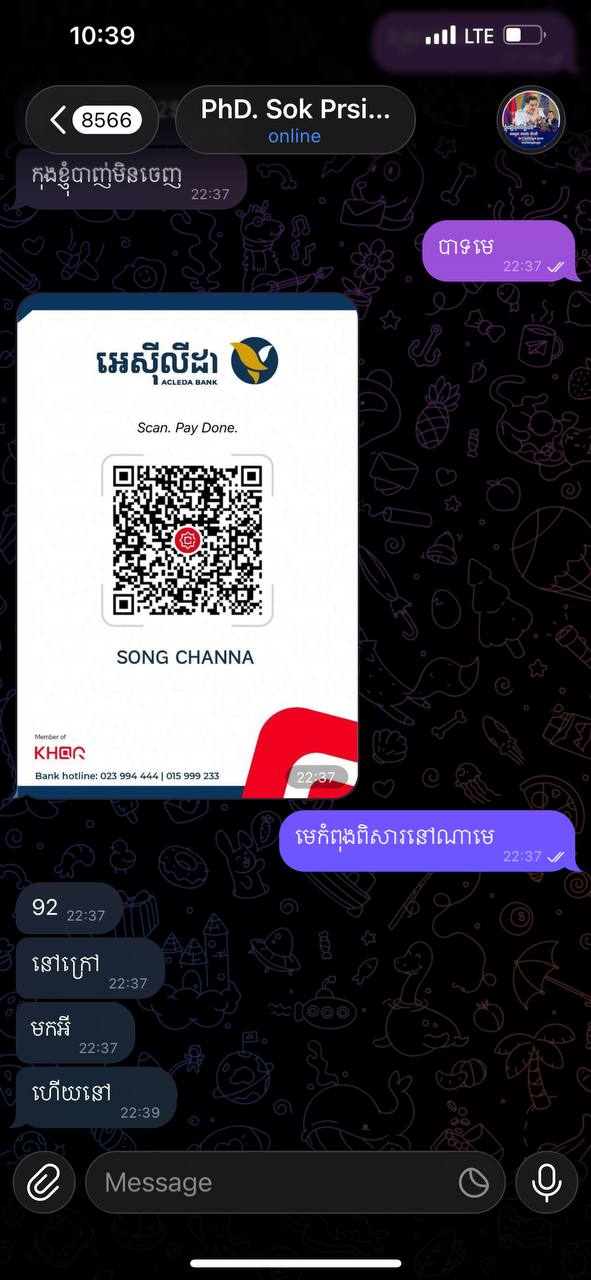 ជាពិសេស សាធារណជនដែលទទួលបានសារ ឬជួបប្រទះសកម្មភាពគួរឱ្យសង្ស័យ សូមធ្វើការជូនដំណឹងភ្លាមៗ មកក្រុមជំនួយការផ្ទាល់ តាមលេខទូរស័ព្ទ៖