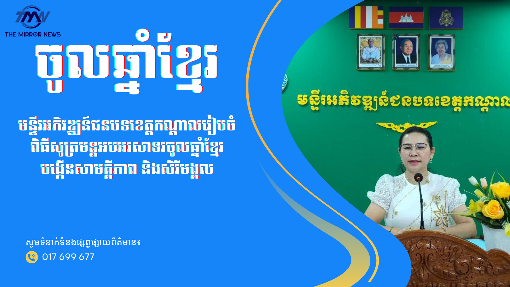 (កណ្តាល)៖ ក្នុងបរិយាកាសអធិកអធម ពោរពេញដោយសេចក្តីជឿជាក់ និងសុភមង្គល នាព្រឹកថ្ងៃទី៩ ខែមេសា ឆ្នាំ២០២៦ មន្ទីរអភិវឌ្ឍន៍ជនបទខេត្តកណ្តាល បានរៀបចំពិធីសូត្រមន្តលើករាសី អបអរសាទរ ពិធីបុណ្យចូលឆ្នាំប្រពៃណីជាតិខ្មែរ ឆ្នាំមមី អដ្ឋស័ក ព.ស.២៥៧០ គ.ស.២០២៦ ក្រោមការដឹកនាំរបស់លោកស្រី ជី ថាវី ប្រធានមន្ទីរ។