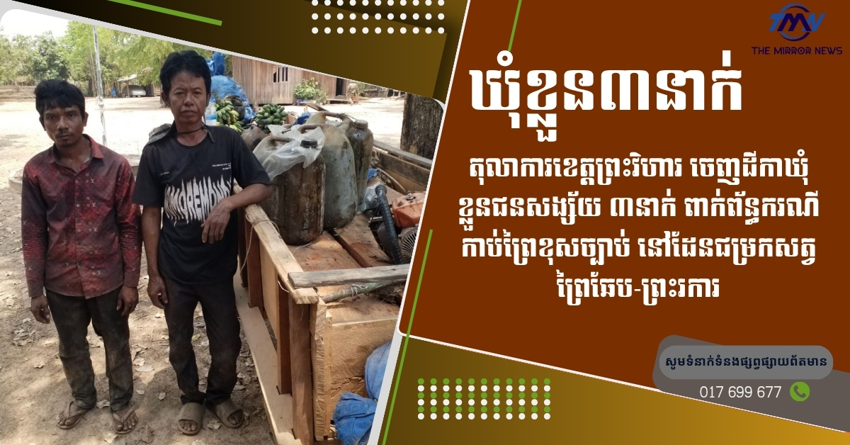 តុលាការខេត្តព្រះវិហារ ចេញដីកាឃុំខ្លួនជនសង្ស័យ ៣នាក់ ពាក់ព័ន្ធករណីកាប់ព្រៃខុសច្បាប់ នៅដែនជម្រកសត្វព្រៃឆែប-ព្រះរការ