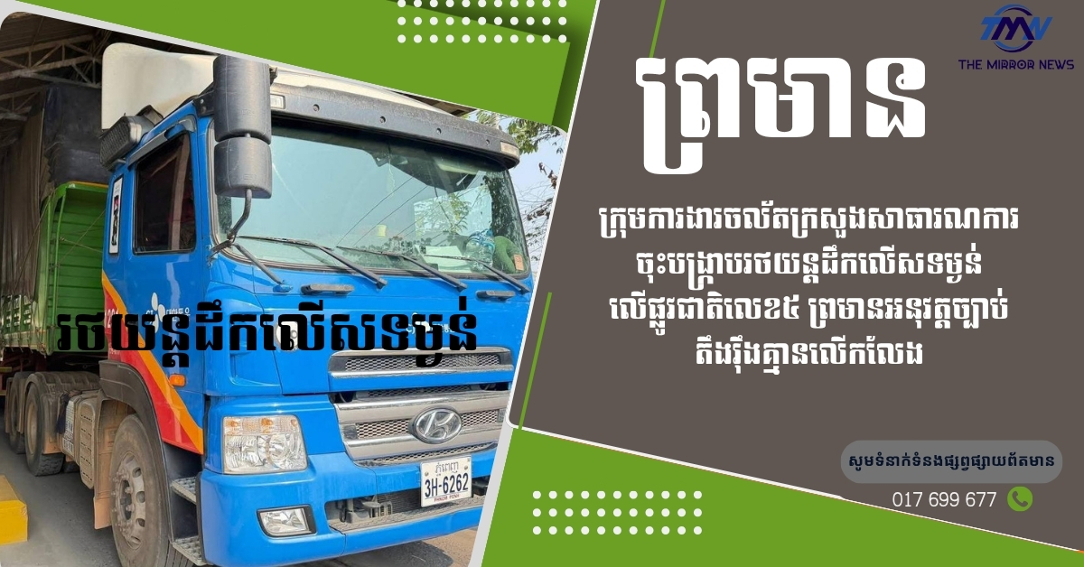 ក្រុមការងារចល័តក្រសួងសាធារណការចុះបង្ក្រាបរថយន្តដឹកលើសទម្ងន់លើផ្លូវជាតិលេខ៥ ព្រមានអនុវត្តច្បាប់តឹងរ៉ឹងគ្មានលើកលែង
