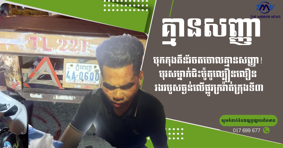 (ភ្នំពេញ)៖ គ្រោះថ្នាក់ចរាចរណ៍ដ៏គួរឲ្យភ្ញាក់ផ្អើលមួយបានកើតឡើង ដោយបុរសម្នាក់ជិះម៉ូតូល្បឿនលឿន បុកចូលរថយន្តកុងតឺន័រដែលចតចោលលើផ្លូវដោយមិនមានភ្លើងសញ្ញាព្រមាន បណ្ដាលឲ្យរងរបួសធ្ងន់ និងម៉ូតូខូចខាតទាំងស្រុង។ ហេតុការណ៍នេះបានកើតឡើងនៅវេលាម៉ោង១០៖៥១នាទីយប់ ថ្ងៃទី១០ ខែមេសា ឆ្នាំ២០២៦ នៅតាមបណ្ដោយផ្លូវក្រវ៉ាត់ក្រុងទី៣ ស្ថិតក្នុងសង្កាត់ចោមចៅ៣ ខណ្ឌពោធិ៍សែនជ័យ រាជធានីភ្នំពេញ។