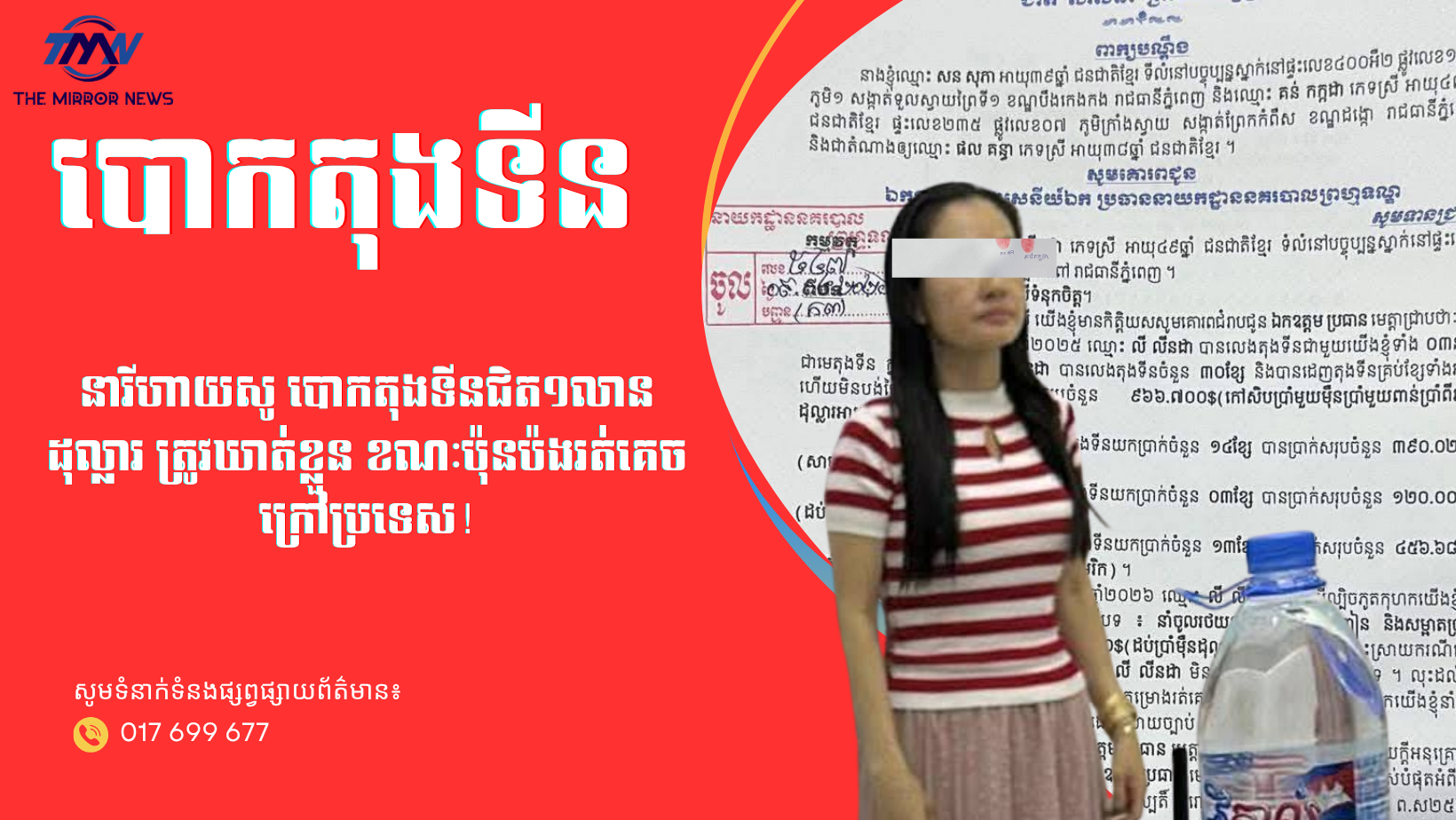 នារីហាយសូ បោកតុងទីនជិត១លានដុល្លារ ត្រូវឃាត់ខ្លួន ខណៈប៉ុនប៉ងរត់គេចក្រៅប្រទេស!