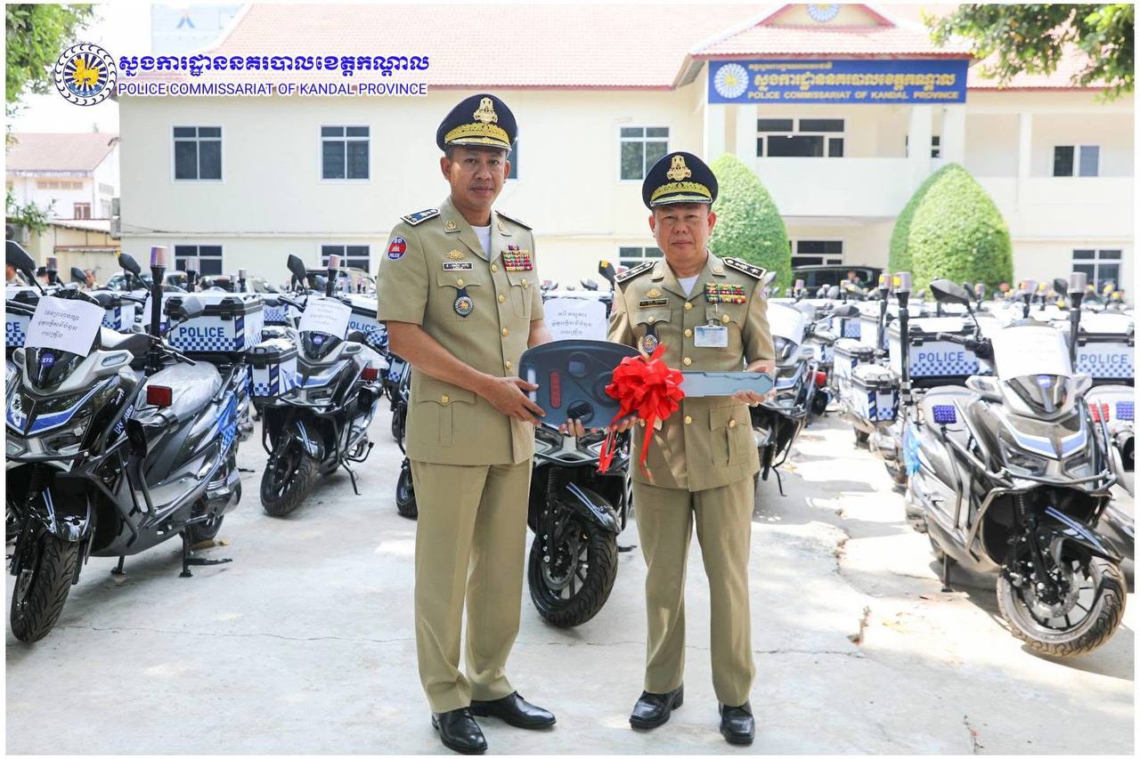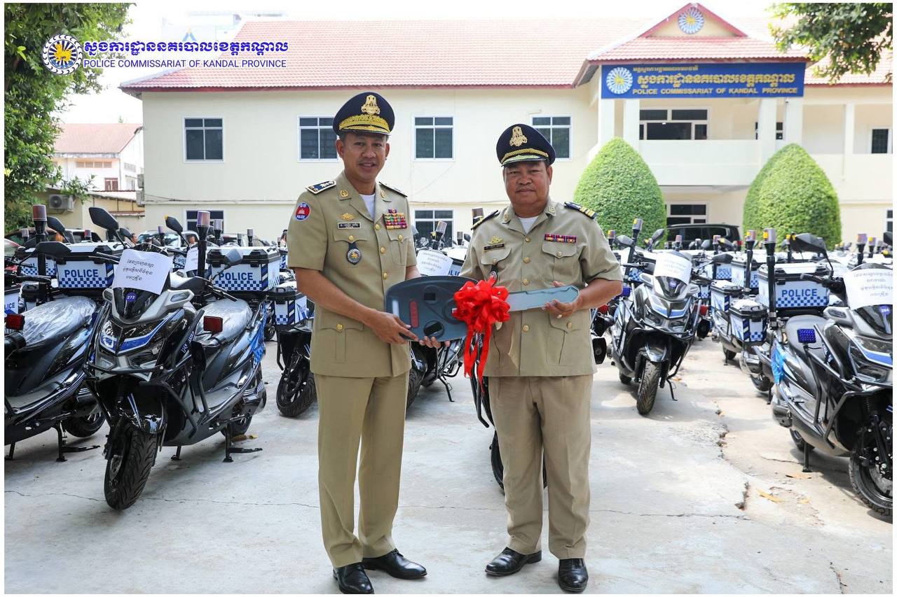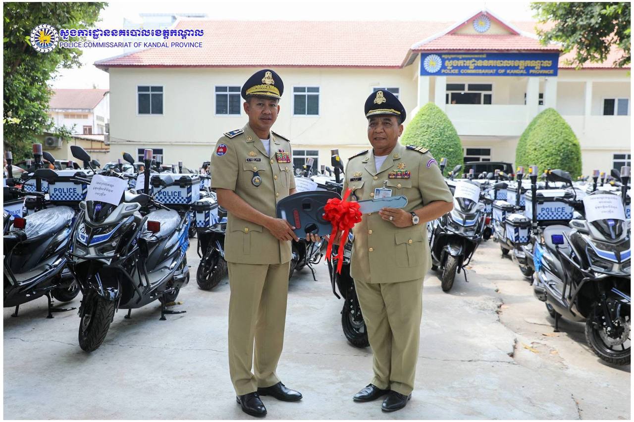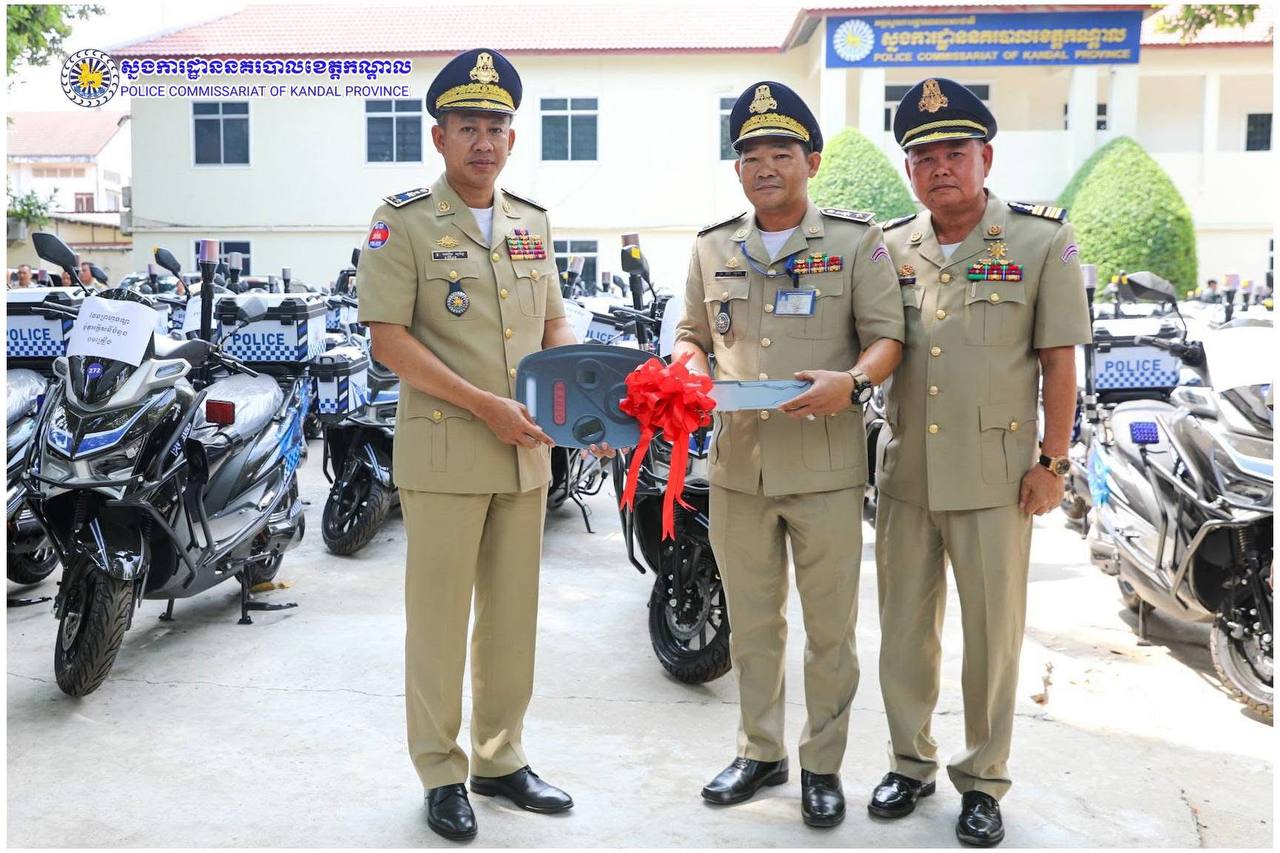 ពង្រឹងសមត្ថភាពការពារ! ម៉ូតូអគ្គិសនីថ្មី ត្រូវបានលោកស្នងការ ឈឿន សុចិត្ត ប្រគល់ជូនកម្លាំងនគរបាលខេត្តកណ្តាល