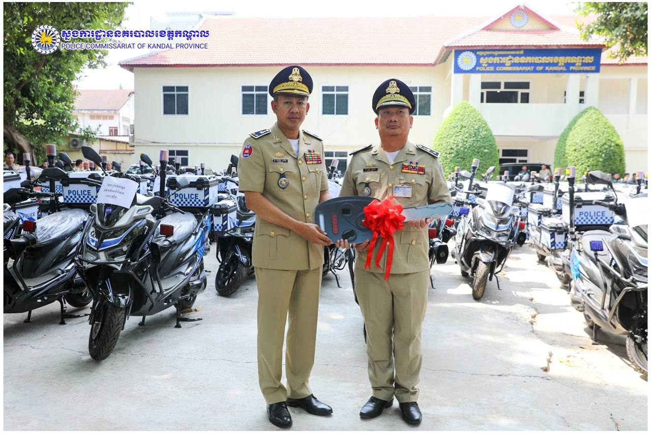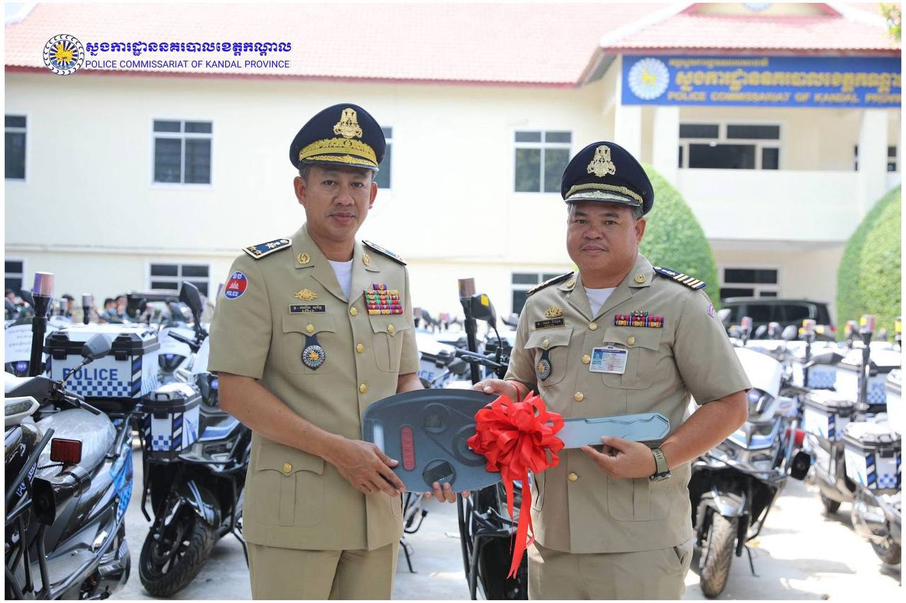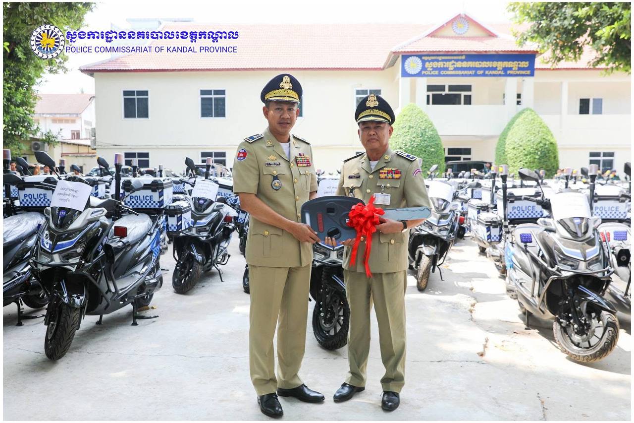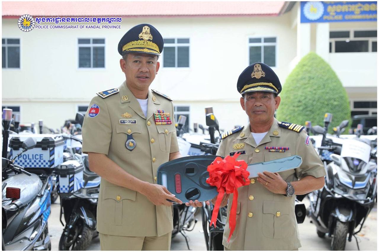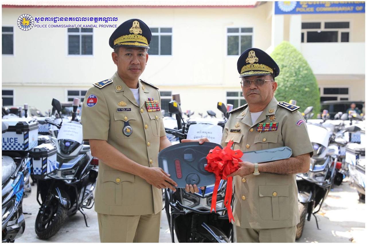 ពង្រឹងសមត្ថភាពការពារ! ម៉ូតូអគ្គិសនីថ្មី ត្រូវបានលោកស្នងការ ឈឿន សុចិត្ត ប្រគល់ជូនកម្លាំងនគរបាលខេត្តកណ្តាល