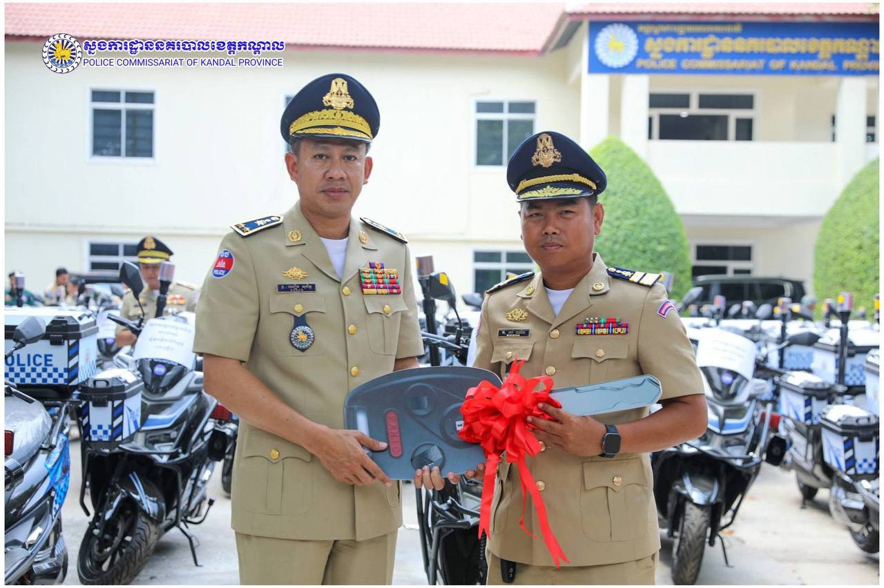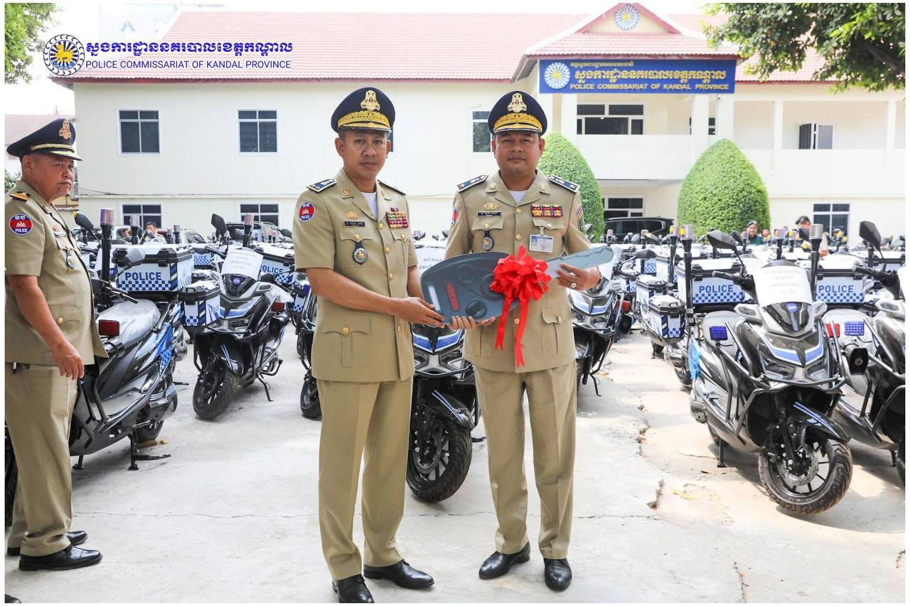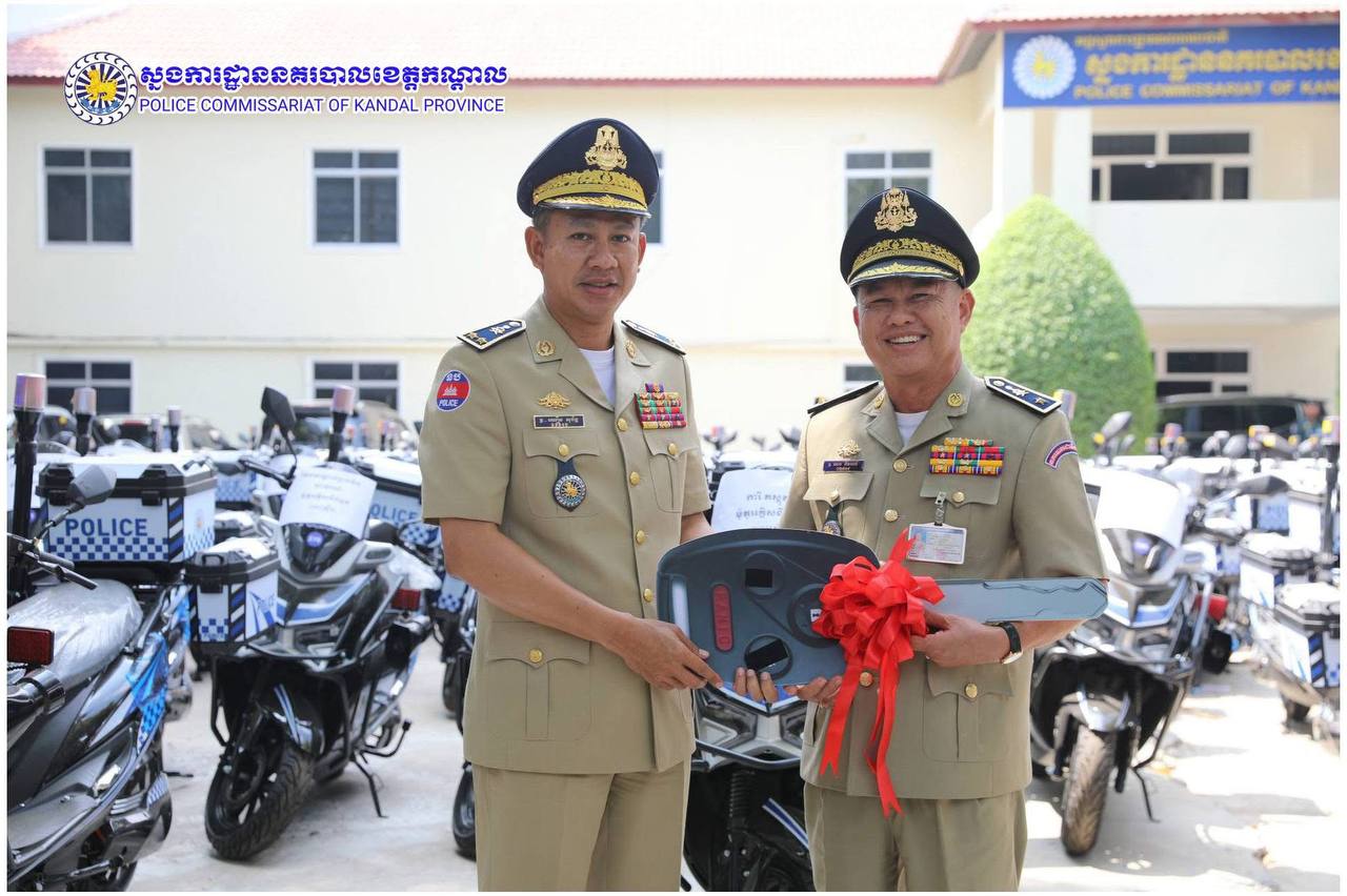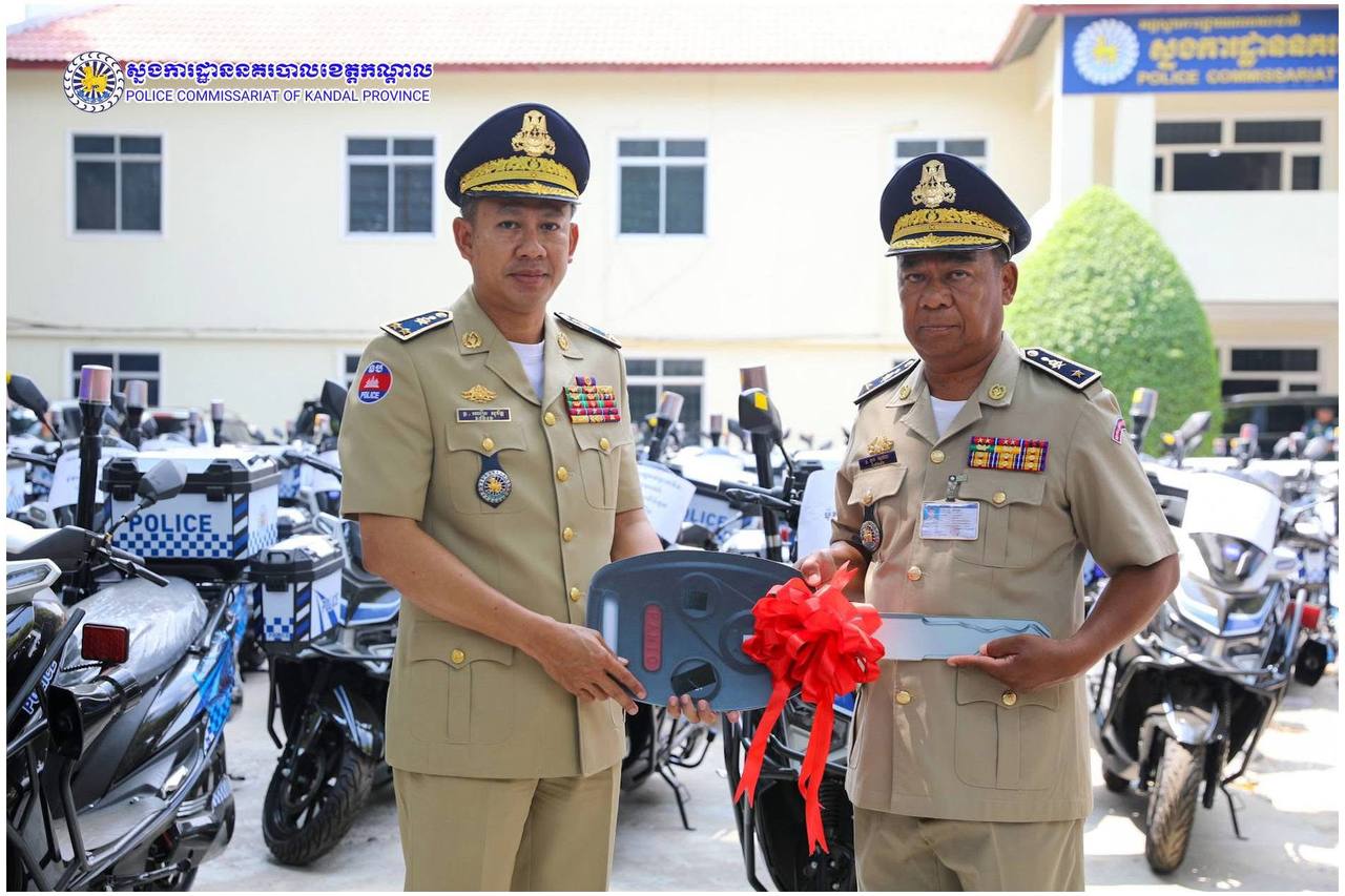 ពង្រឹងសមត្ថភាពការពារ! ម៉ូតូអគ្គិសនីថ្មី ត្រូវបានលោកស្នងការ ឈឿន សុចិត្ត ប្រគល់ជូនកម្លាំងនគរបាលខេត្តកណ្តាល