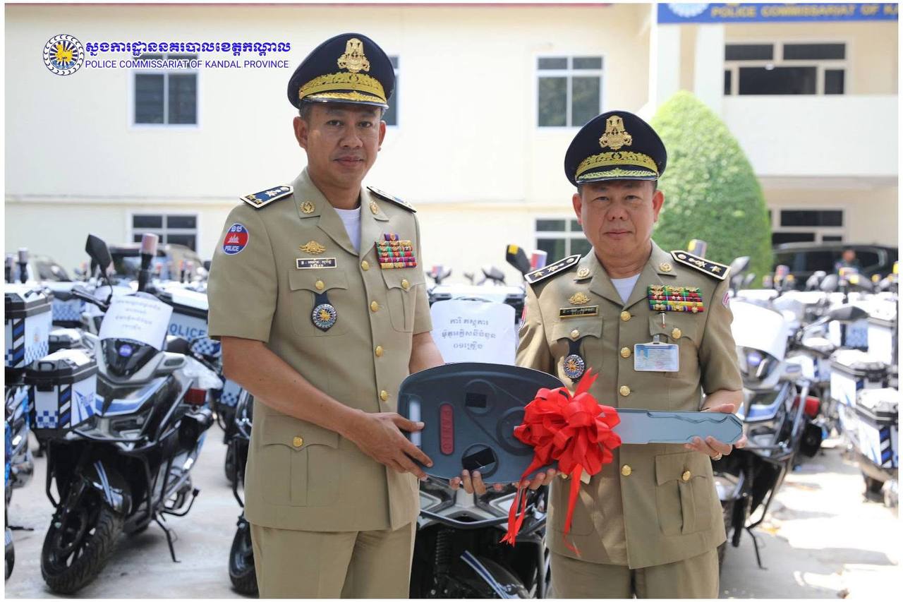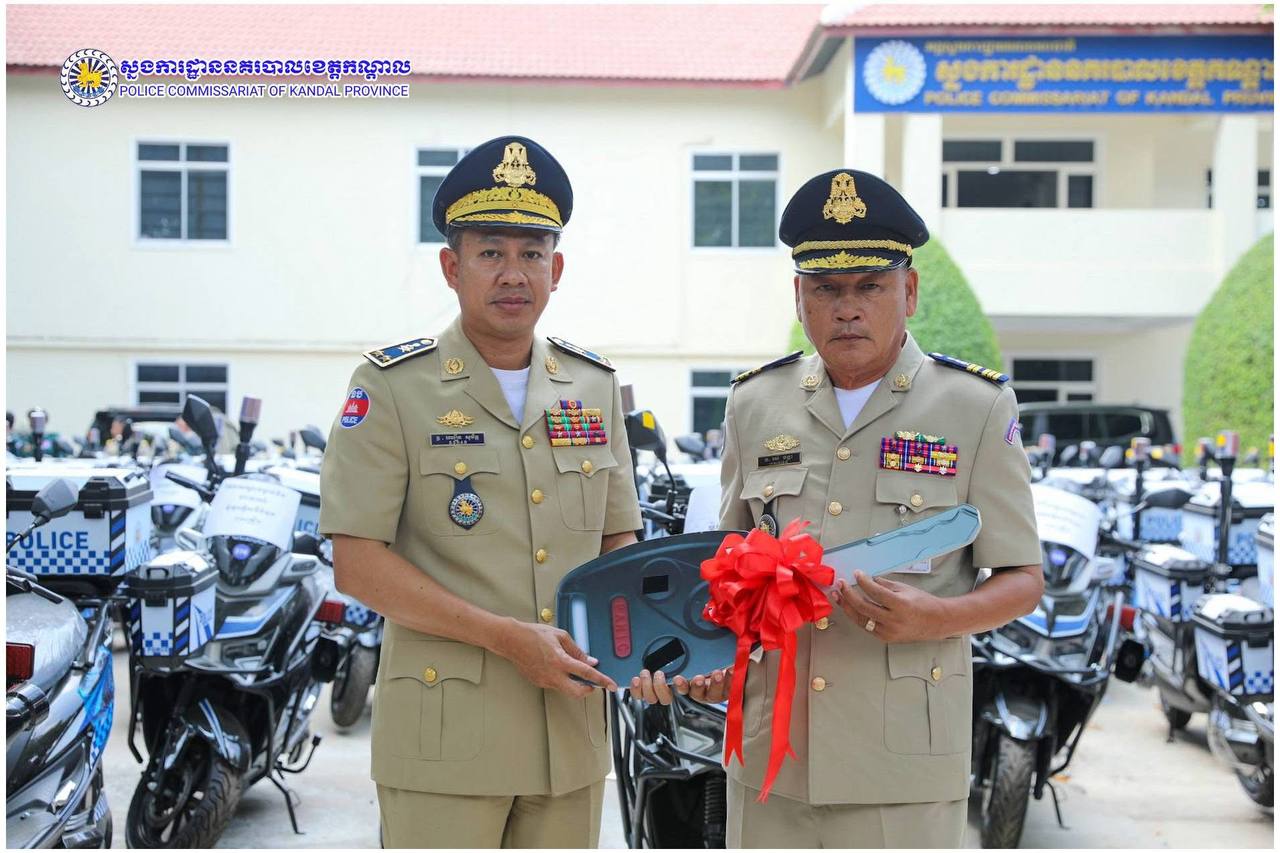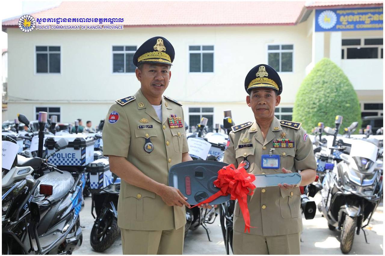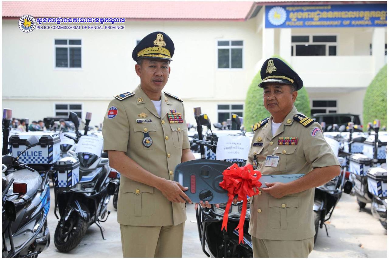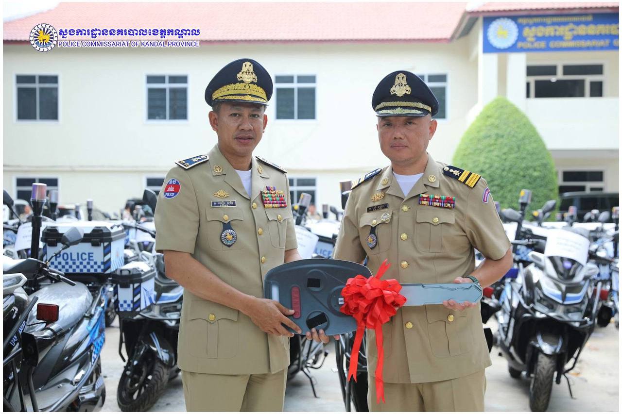ពង្រឹងសមត្ថភាពការពារ! ម៉ូតូអគ្គិសនីថ្មី ត្រូវបានលោកស្នងការ ឈឿន សុចិត្ត ប្រគល់ជូនកម្លាំងនគរបាលខេត្តកណ្តាល