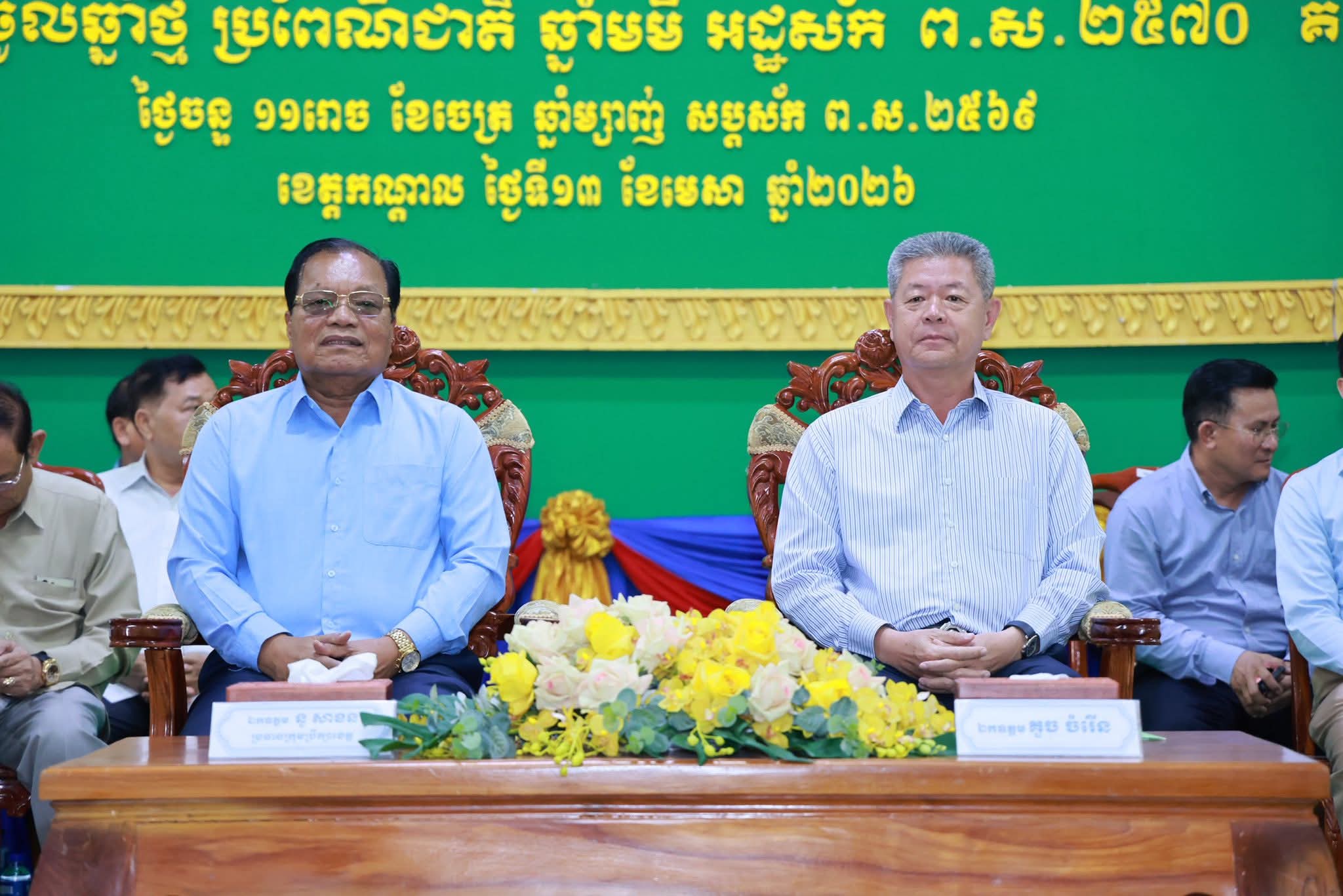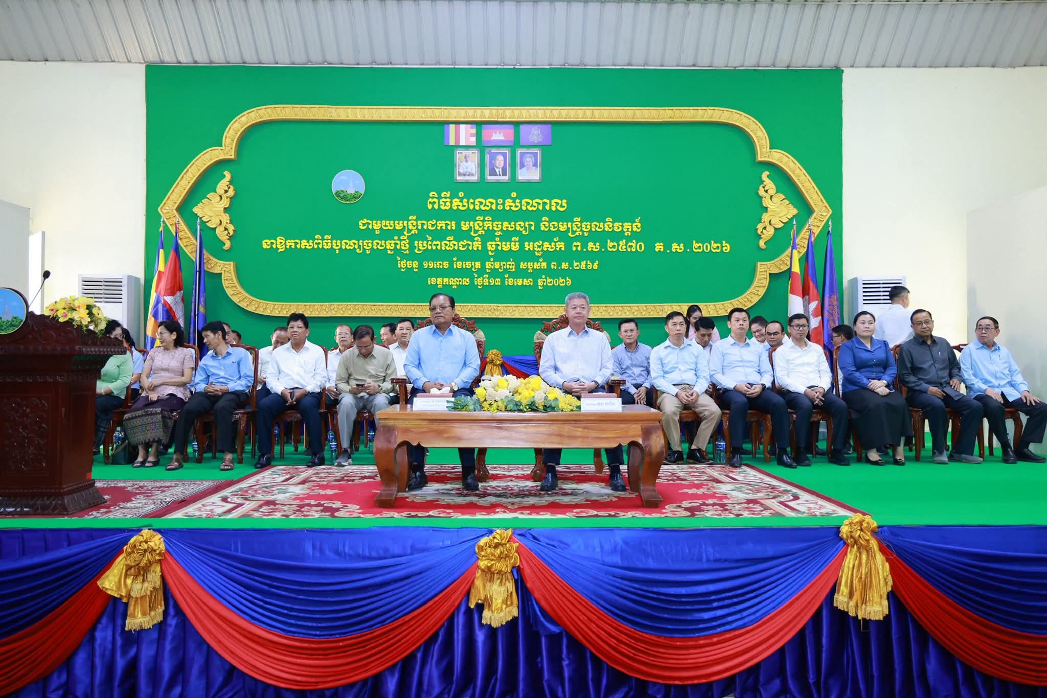 (កណ្ដាល)៖ នារសៀលថ្ងៃទី១៣ ខែមេសា ឆ្នាំ២០២៦ ឯកឧត្តម នូ សាខន ប្រធានក្រុមប្រឹក្សាខេត្ត និងឯកឧត្តម គួច ចំរើន អភិបាលខេត្តកណ្ដាល បានអញ្ជើញជាអធិបតីក្នុងពិធីសំណេះសំណាលជាមួយមន្ត្រីរាជការ មន្ត្រីកិច្ចសន្យា និងមន្ត្រីចូលនិវត្តន៍ ប្រមាណជាង៥០០នាក់ ដើម្បីអបអរសាទរពិធីបុណ្យចូលឆ្នាំថ្មីប្រពៃណីជាតិ នៅសាលាខេត្តកណ្ដាល ក្នុងបរិយាកាសស្និទ្ធស្នាល និងរីករាយ។