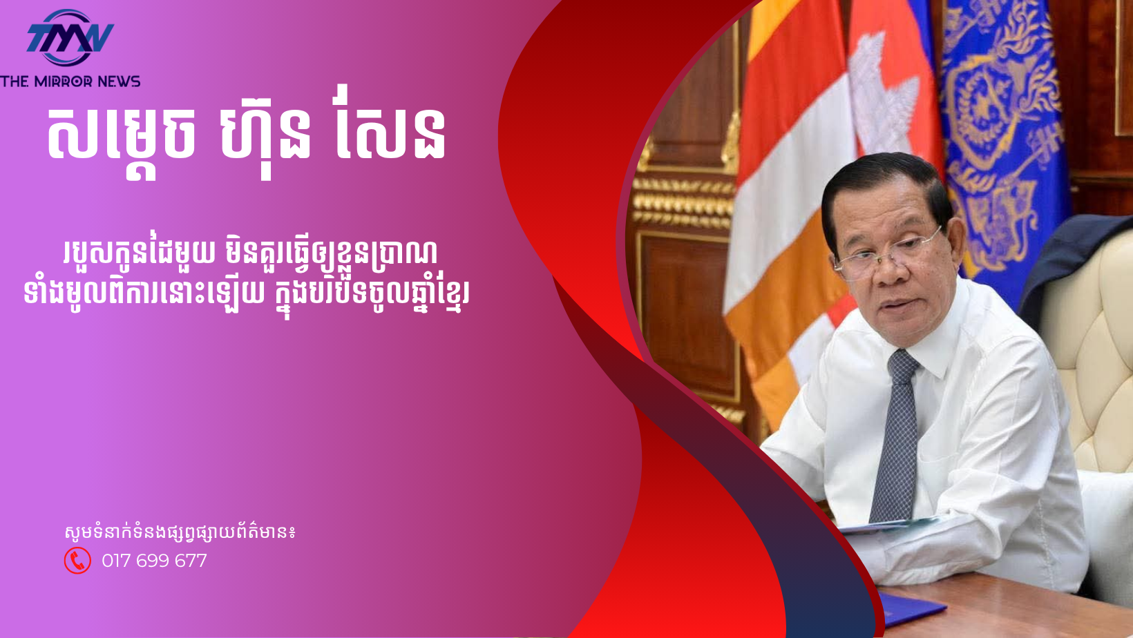 សម្ដេចតេជោ ហ៊ុន សែន៖ របួសកូនដៃមួយ មិនគួរធ្វើឲ្យខ្លួនប្រាណទាំងមូលពិការនោះឡើយ ក្នុងបរិបទចូលឆ្នាំខ្មែរ