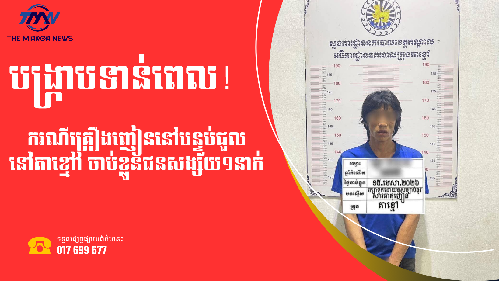បង្ក្រាបទាន់ពេល! ករណីគ្រឿងញៀននៅបន្ទប់ជួលនៅតាខ្មៅ ចាប់ខ្លួនជនសង្ស័យ១នាក់