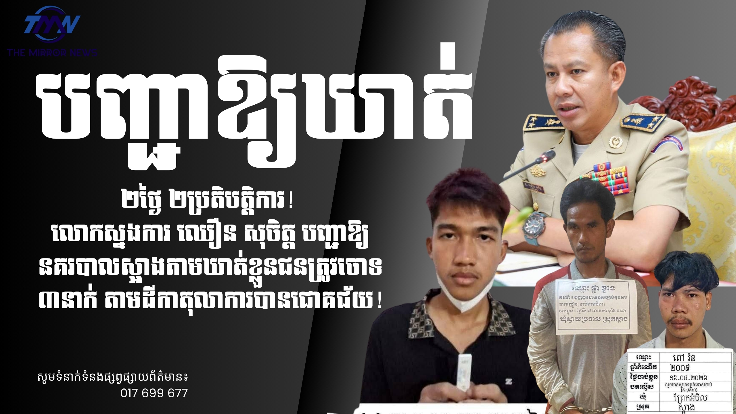 ២ថ្ងៃ ២ប្រតិបត្តិការ! លោកស្នងការ​ ឈឿន សុចិត្ត បញ្ជាឱ្យនគរបាលស្អាងតាមឃាត់ខ្លួនជនត្រូវចោទ ៣នាក់ តាមដីកាតុលាការបានជោគជ័យ!