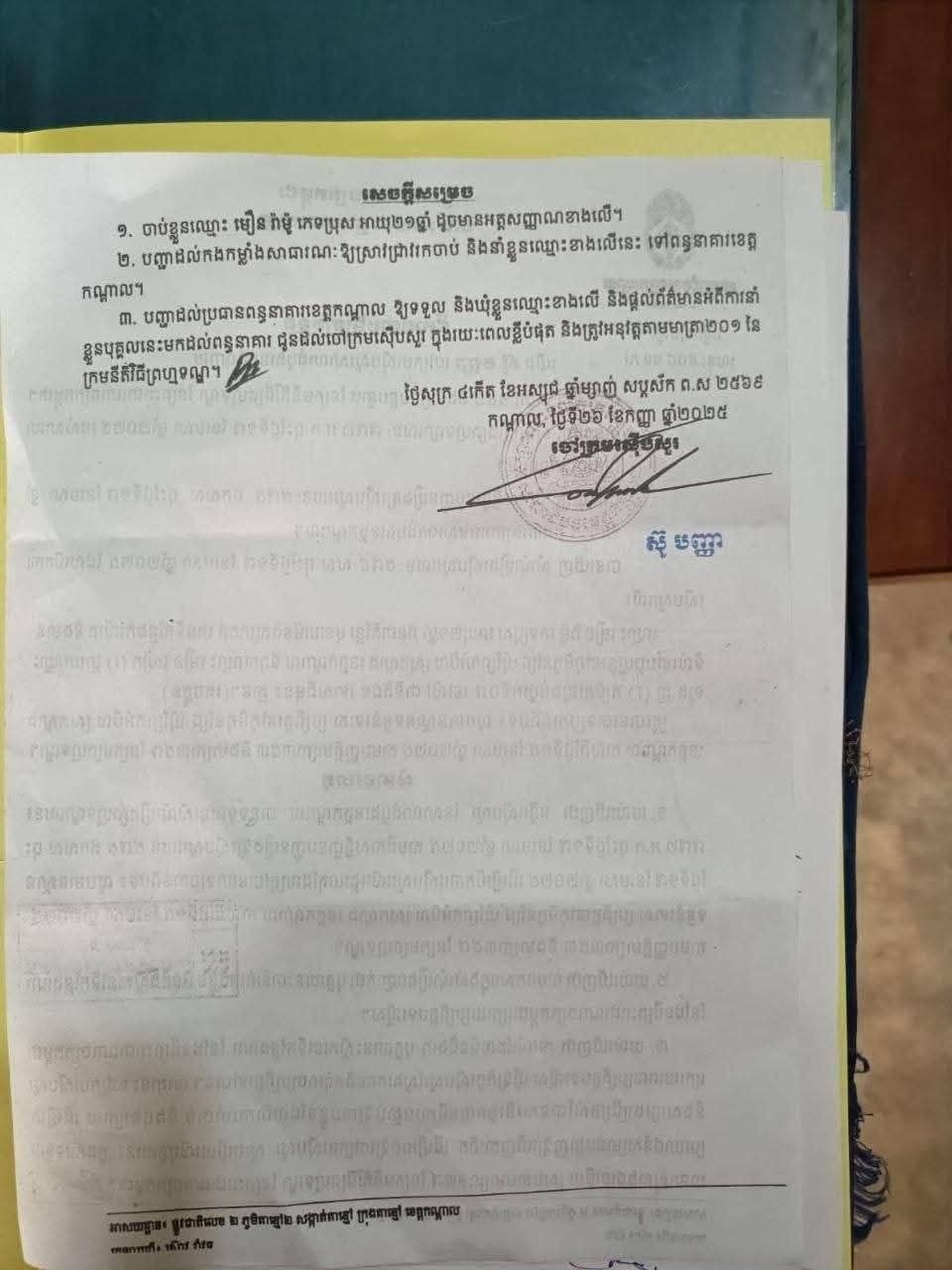 បច្ចុប្បន្ន ជនត្រូវចោទទាំង៣នាក់ ត្រូវបានសមត្ថកិច្ចឃាត់ខ្លួនបណ្ដោះអាសន្ននៅអធិការដ្ឋាននគរបាលស្រុកស្អាង ដើម្បីរៀបចំសំណុំរឿងបញ្ជូនទៅសាលាដំបូងខេត្តកណ្ដាល ចាត់ការបន្តតាមនីតិវិធីច្បាប់។