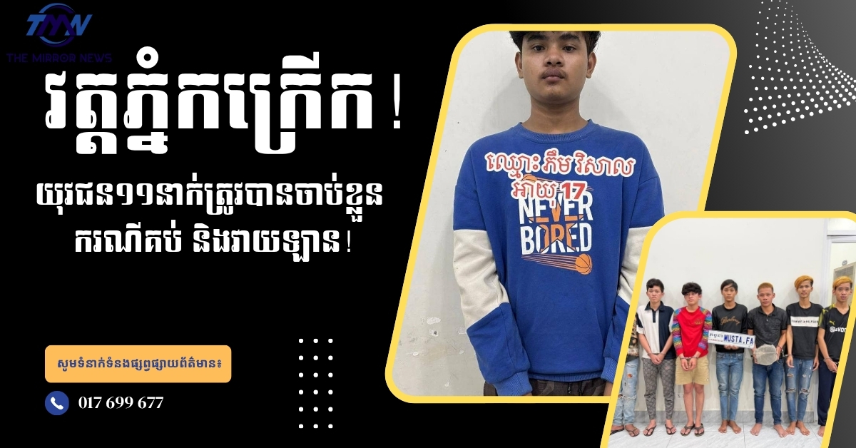 (ភ្នំពេញ)៖ នគរបាលរាជធានីភ្នំពេញបានចាត់វិធានការយ៉ាងតឹងរ៉ឹងចំពោះក្រុមយុវជនដែលបង្កអសន្តិសុខសាធារណៈនៅតំបន់វត្តភ្នំ ដោយបានចាប់ខ្លួនជនពាក់ព័ន្ធបានចំនួន ១១នាក់ហើយ ខណៈអ្នកផ្សេងទៀតកំពុងត្រូវបានស្រាវជ្រាវបន្ត ដើម្បីនាំខ្លួនមកអនុវត្តតាមច្បាប់។