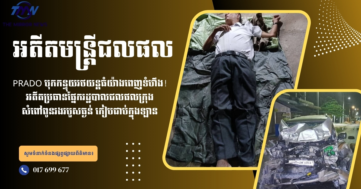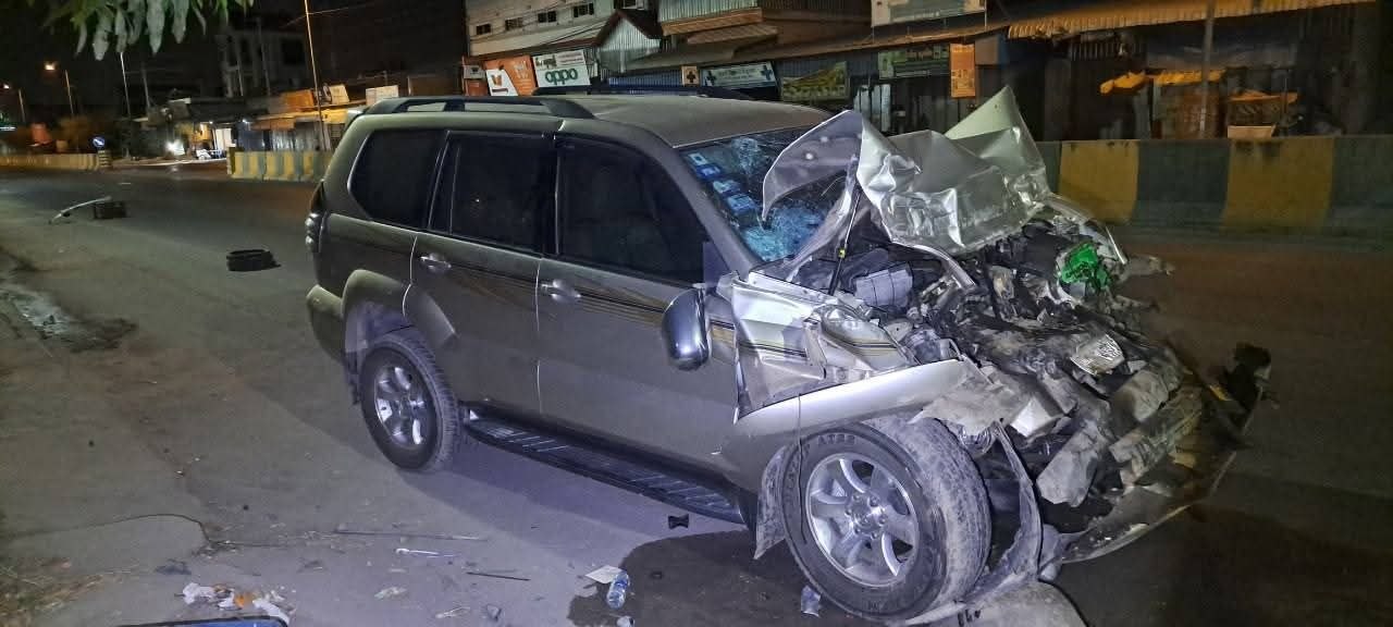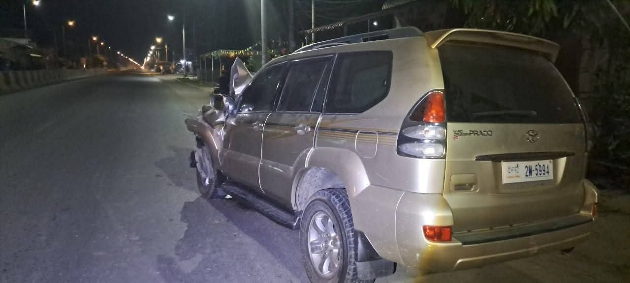 PRADO បុកកន្ទុយរថយន្តធំយ៉ាងពេញទំហឹង! អតីតប្រធានផ្នែករដ្ឋបាលជលផលក្រុងសំពៅពូនរងរបួសធ្ងន់ កៀបជាប់ក្នុងឡាន