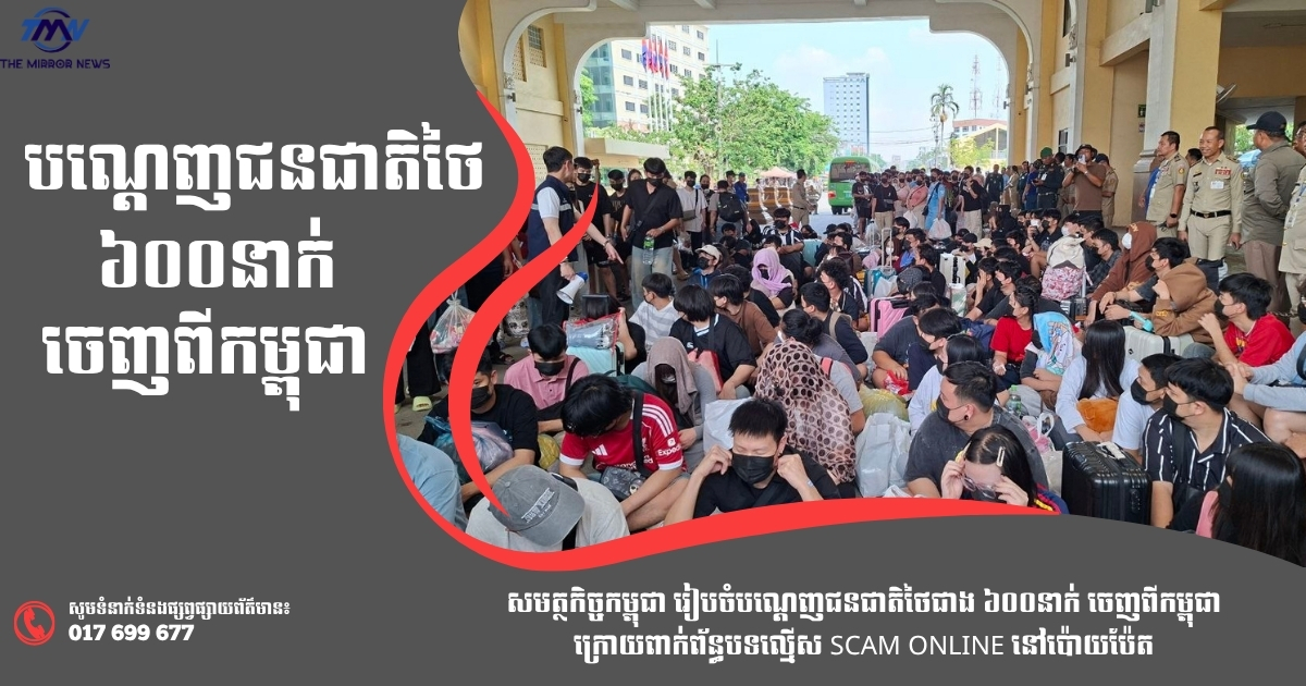 (បន្ទាយមានជ័យ)៖ កម្លាំងសមត្ថកិច្ចកម្ពុជា នៅរសៀលថ្ងៃទី៣០ ខែមេសា ឆ្នាំ២០២៦នេះ កំពុងរៀបចំនីតិវិធីបណ្ដេញជនជាតិថៃជាង ៦០០នាក់ ត្រឡប់ទៅប្រទេសដើមវិញ បន្ទាប់ពីឃាត់ខ្លួនពាក់ព័ន្ធនឹងបទល្មើសឆបោកតាមប្រព័ន្ធអនឡាញ (Scam Online) និងបទល្មើសពាក់ព័ន្ធមួយចំនួនទៀត នៅក្រុងប៉ោយប៉ែត ខេត្តបន្ទាយមានជ័យ។